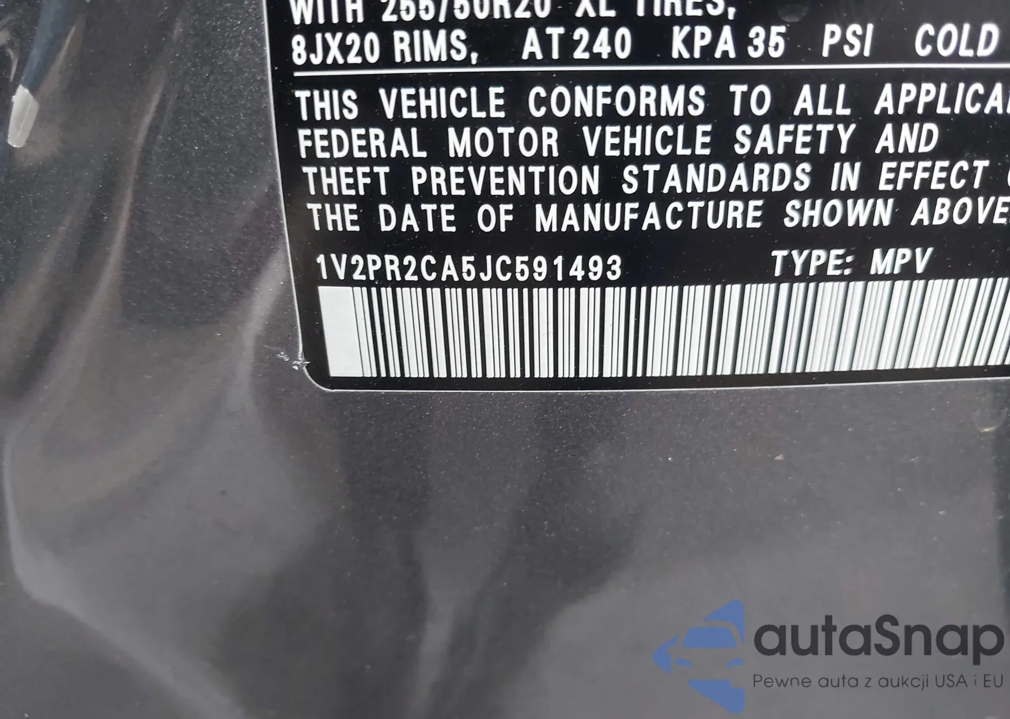 • VIN: 1V2PR2CA5JC591493