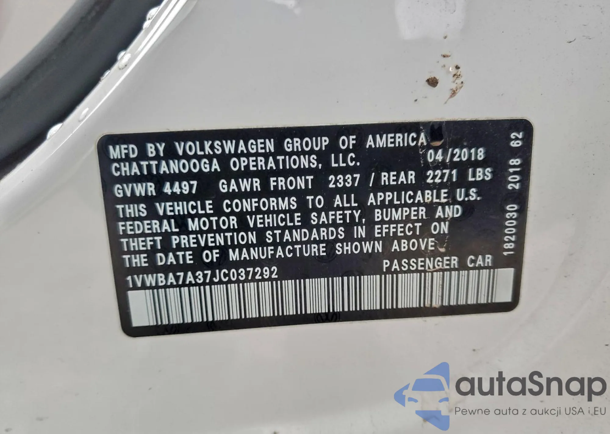 VIN: 1VWBA7A37JC037292