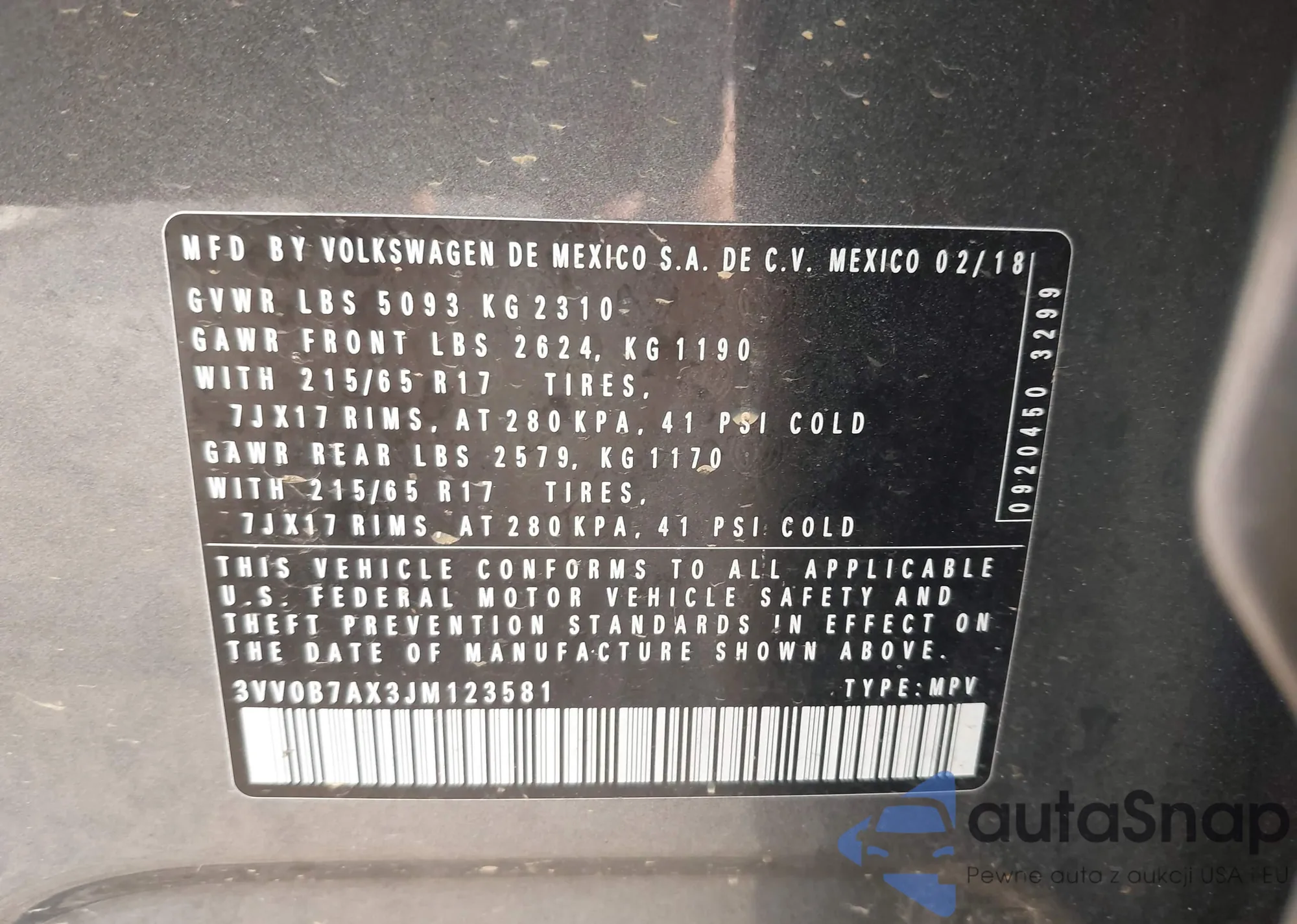 VIN: 3VV0B7AX3JM123581