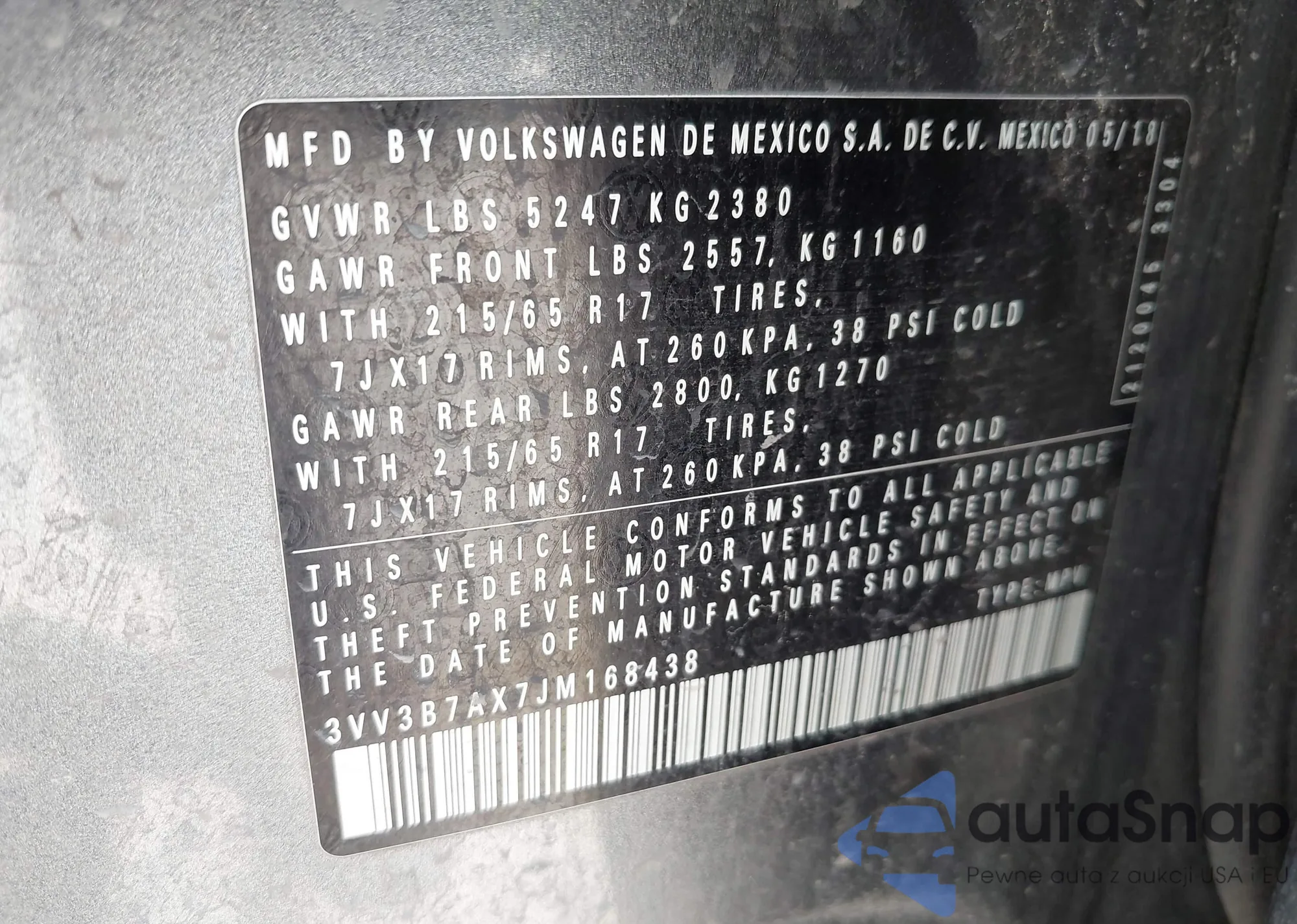 VIN: 3VV3B7AX7JM168438