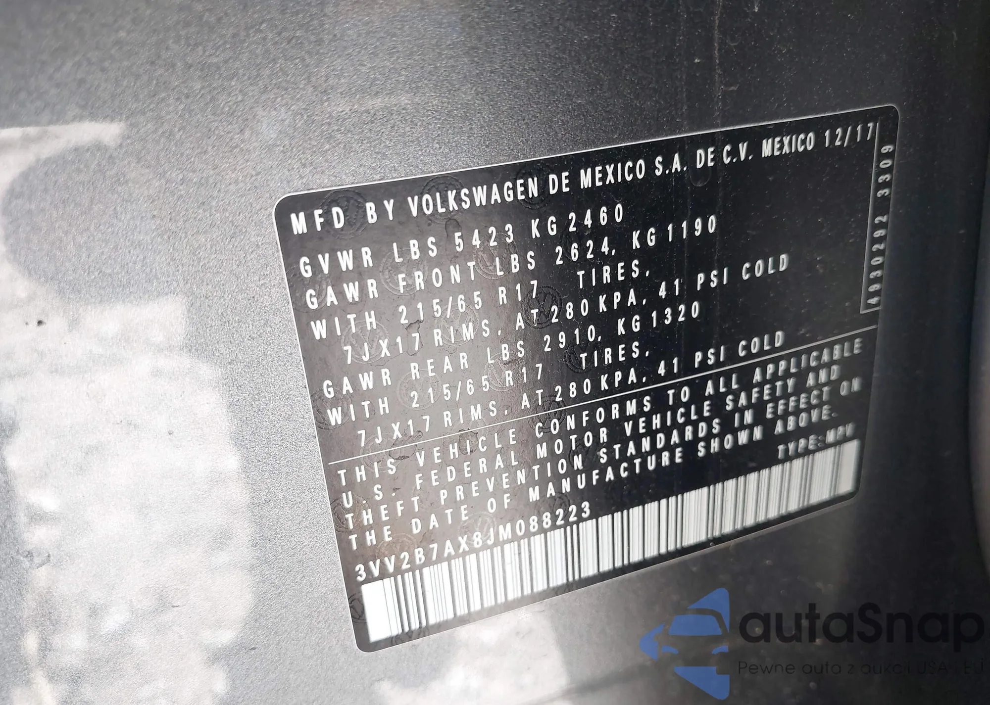VIN: 3VV2B7AX8JM088223