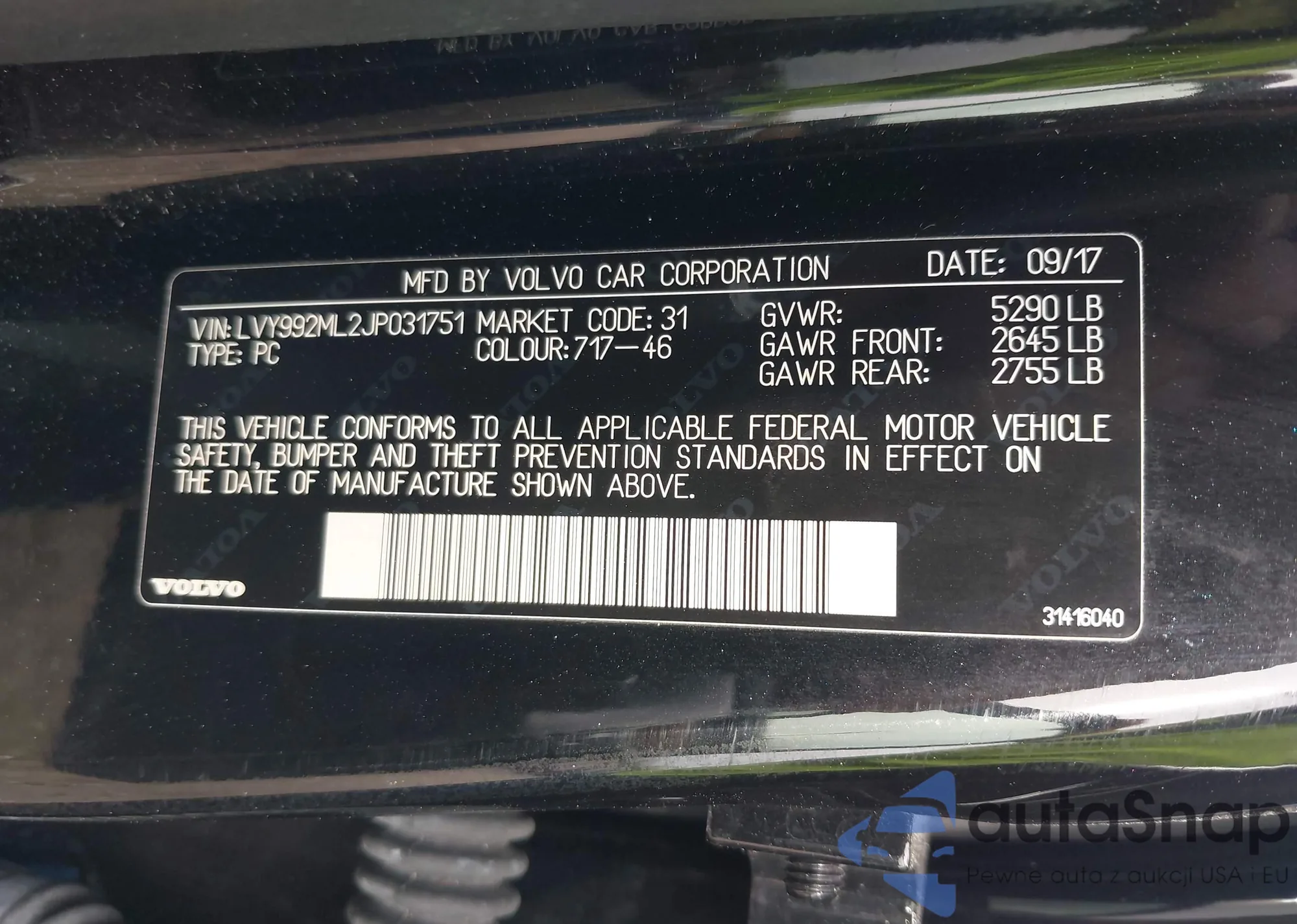 Samochód Volvo S90 2018 (VIN LVY992ML2JP031751) nie był wcześniej licytowany. Dokumenty są czyste, przebieg odpowiada lub jest niższy niż średnia rynku. Sprzedaje go firma ubezpieczeniowa – polecamy zakup. Dostawa do portu zajmie ok. 6–8 tygodni.