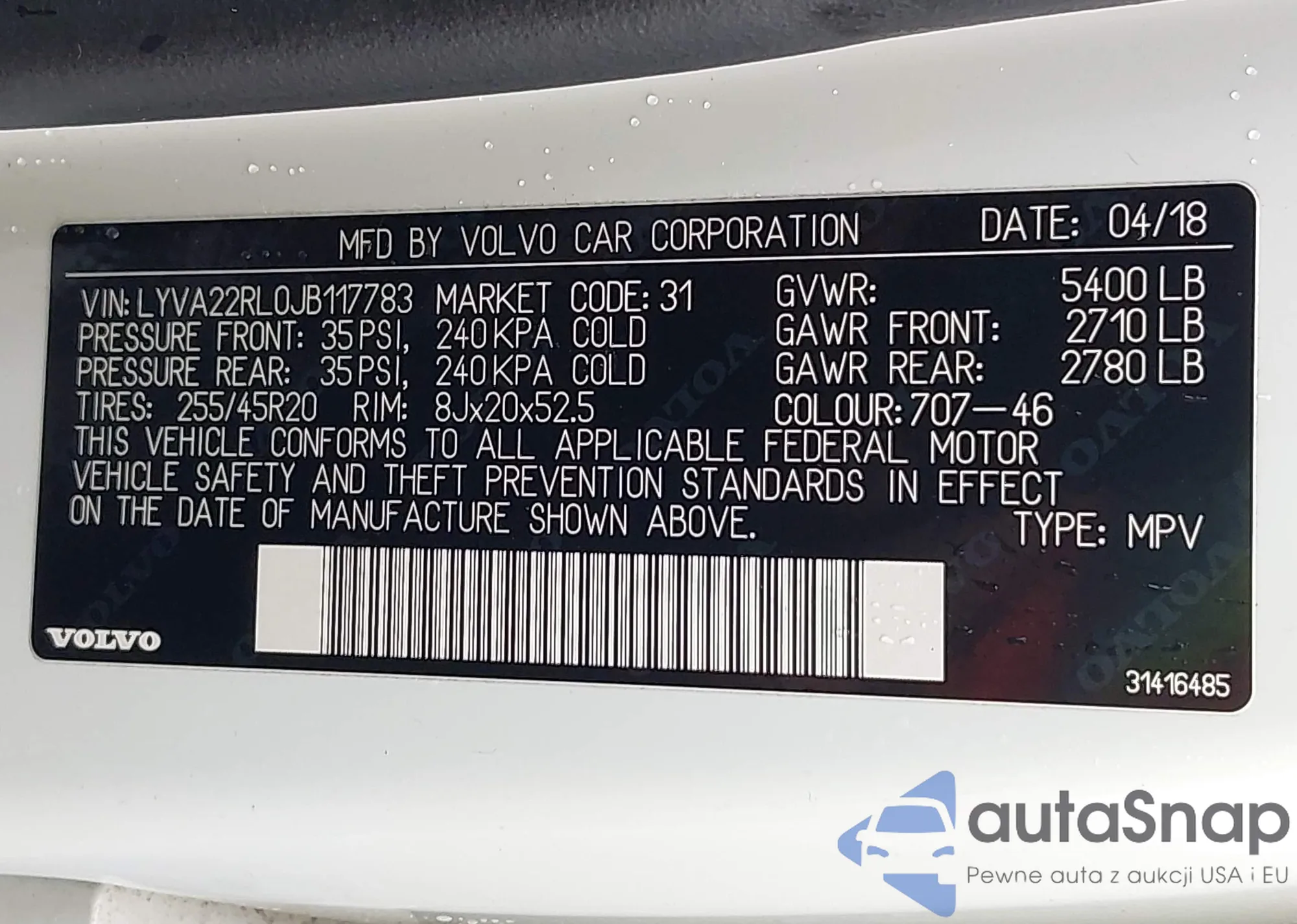 • VIN: LYVA22RL0JB117783