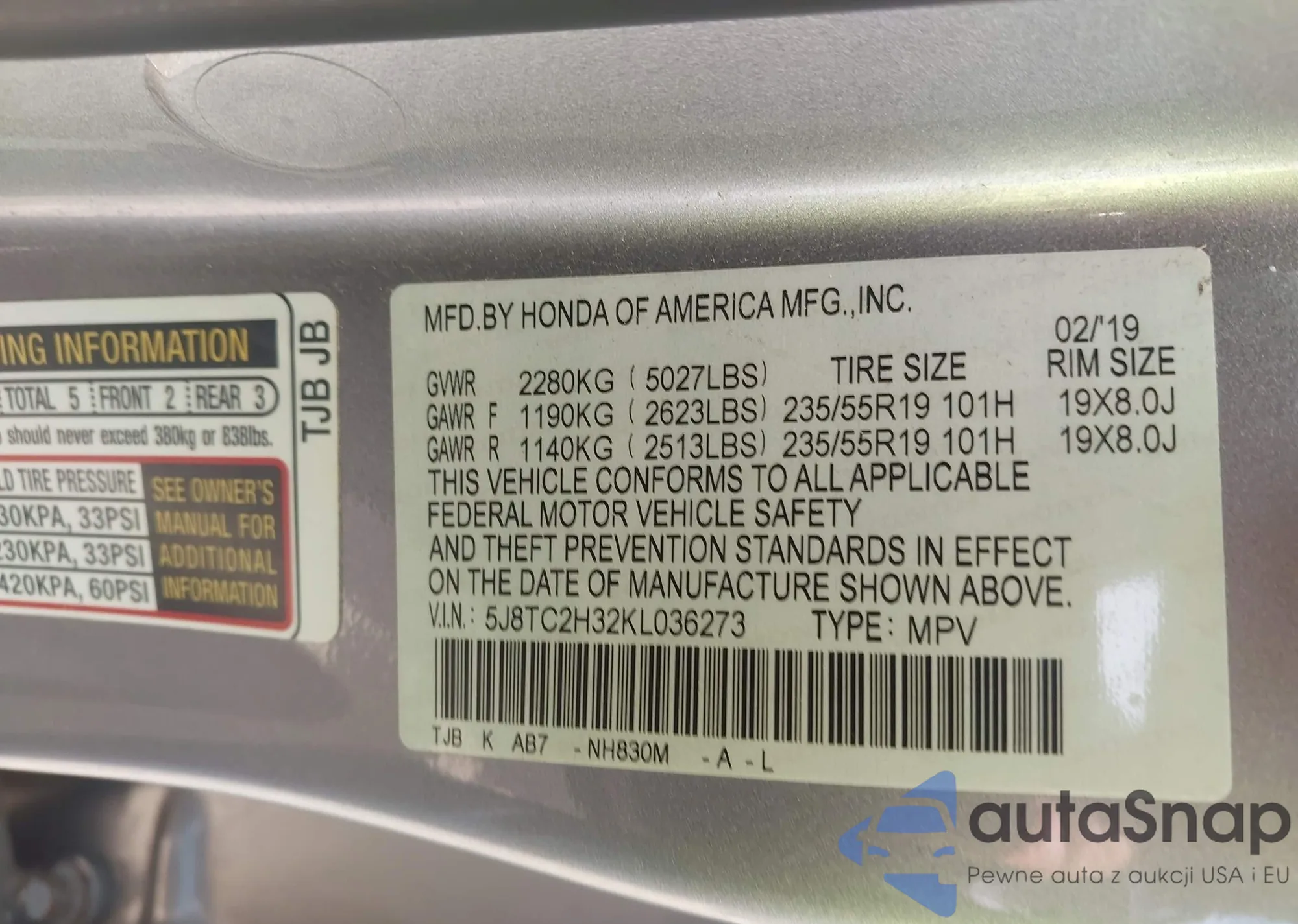VIN: 5J8TC2H32KL036273