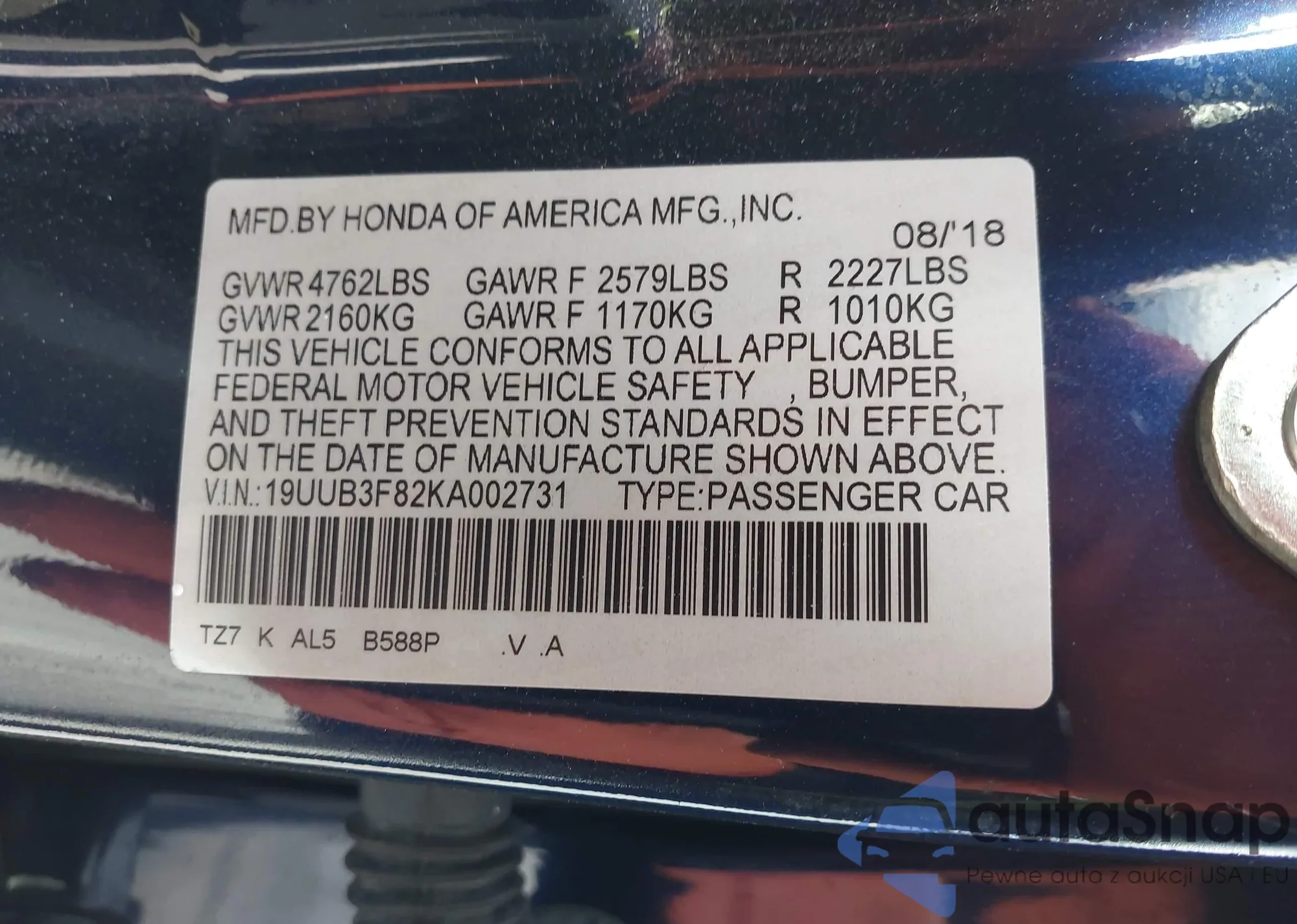 VIN: 19UUB3F82KA002731