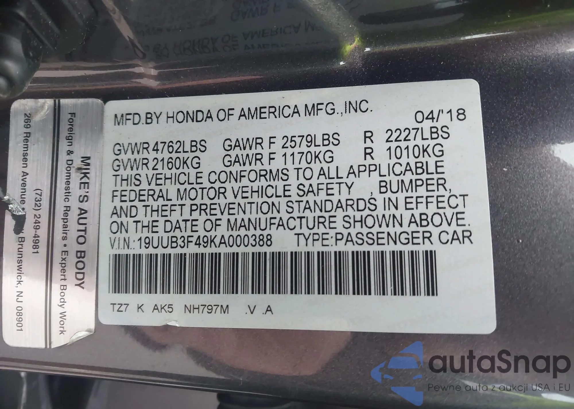 VIN: 19UUB3F49KA000388