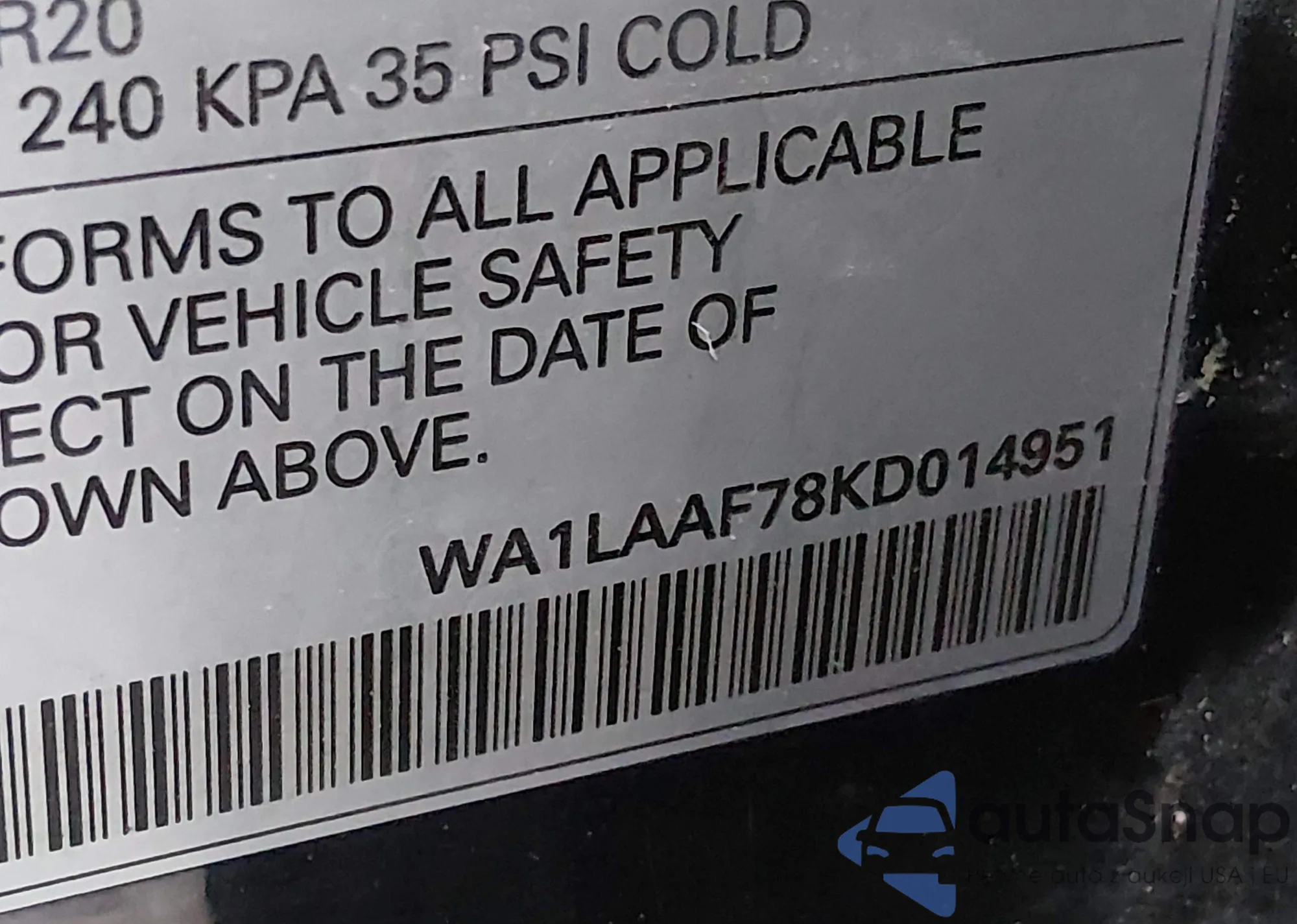 • VIN: WA1LAAF78KD014951