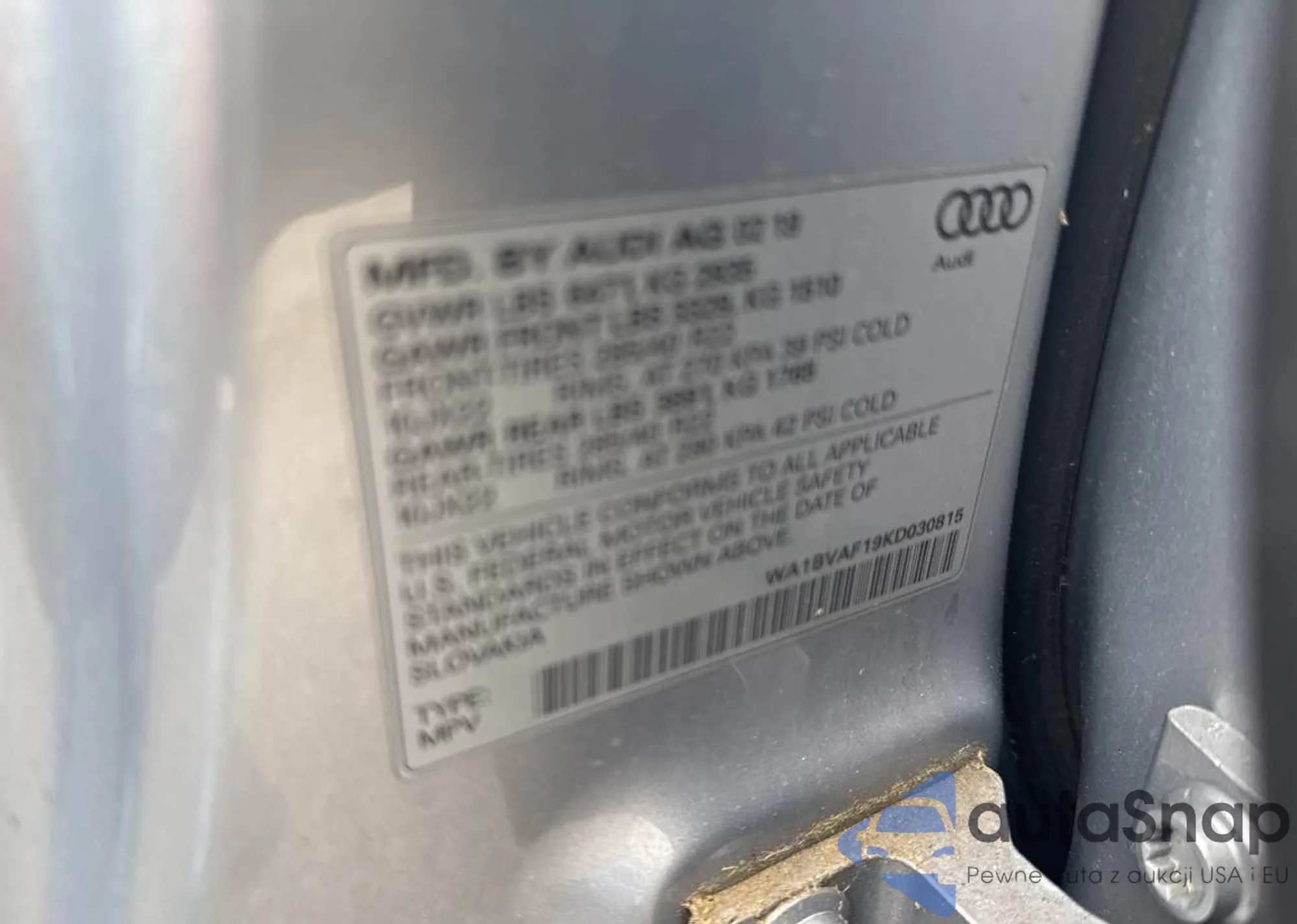 VIN: WA1BVAF19KD030815