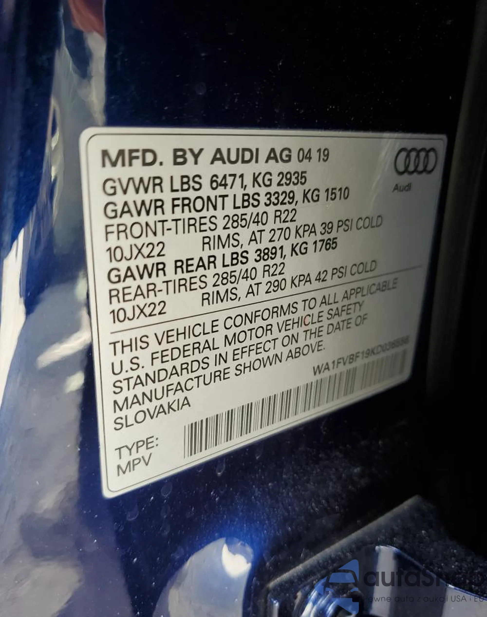 Samochód Audi Q8 2019 (VIN WA1FVBF19KD036556) nie był wcześniej licytowany. Dokumenty są czyste, przebieg odpowiada lub jest niższy niż średnia rynku. Sprzedaje go firma ubezpieczeniowa – polecamy zakup. Dostawa do portu zajmie ok. 6–8 tygodni.