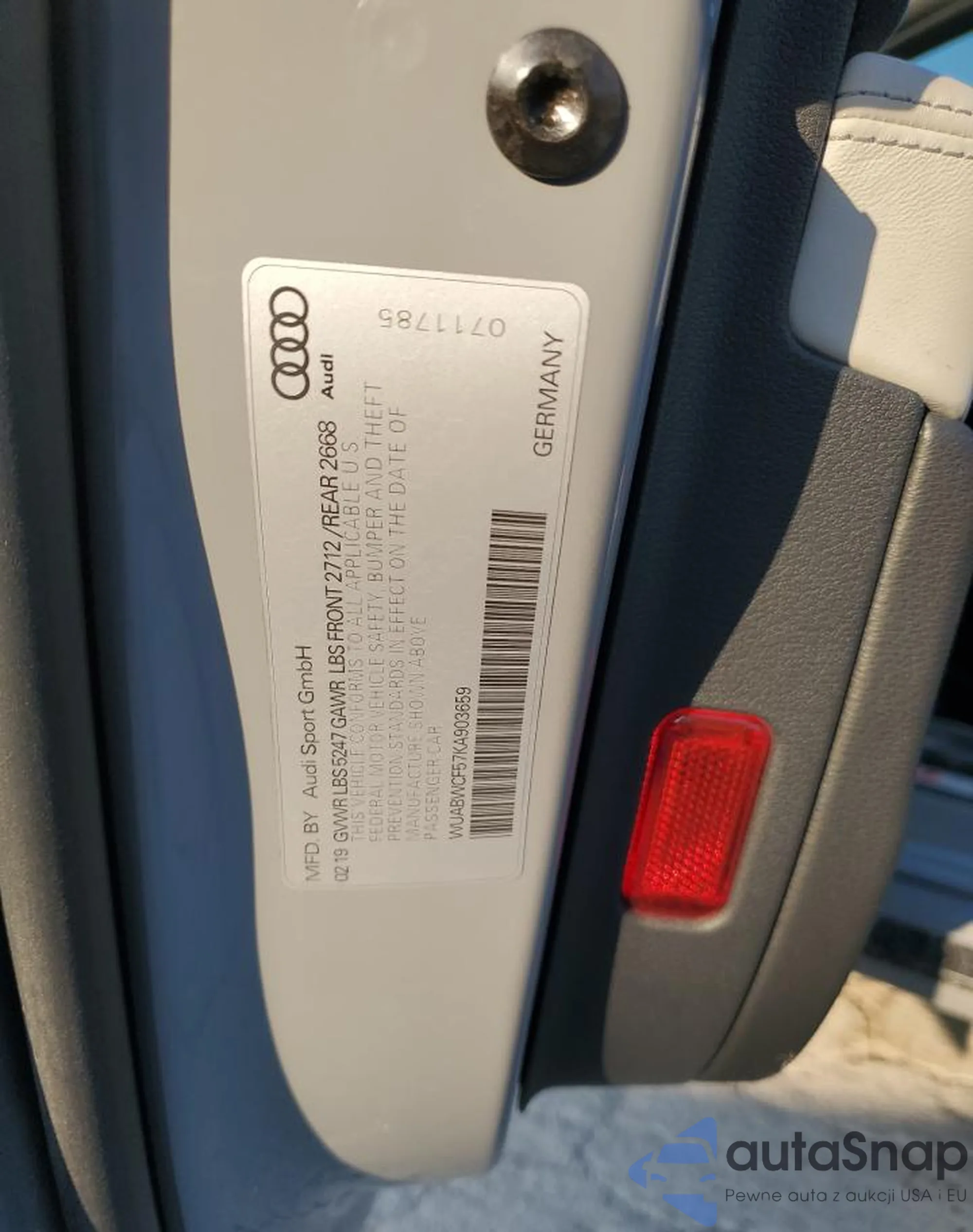 Samochód Audi RS5 2019 (VIN WUABWCF57KA903659) nie był wcześniej licytowany. Dokumenty są czyste, przebieg odpowiada lub jest niższy niż średnia rynku. Sprzedaje go firma ubezpieczeniowa – polecamy zakup. Dostawa do portu zajmie ok. 6–8 tygodni.