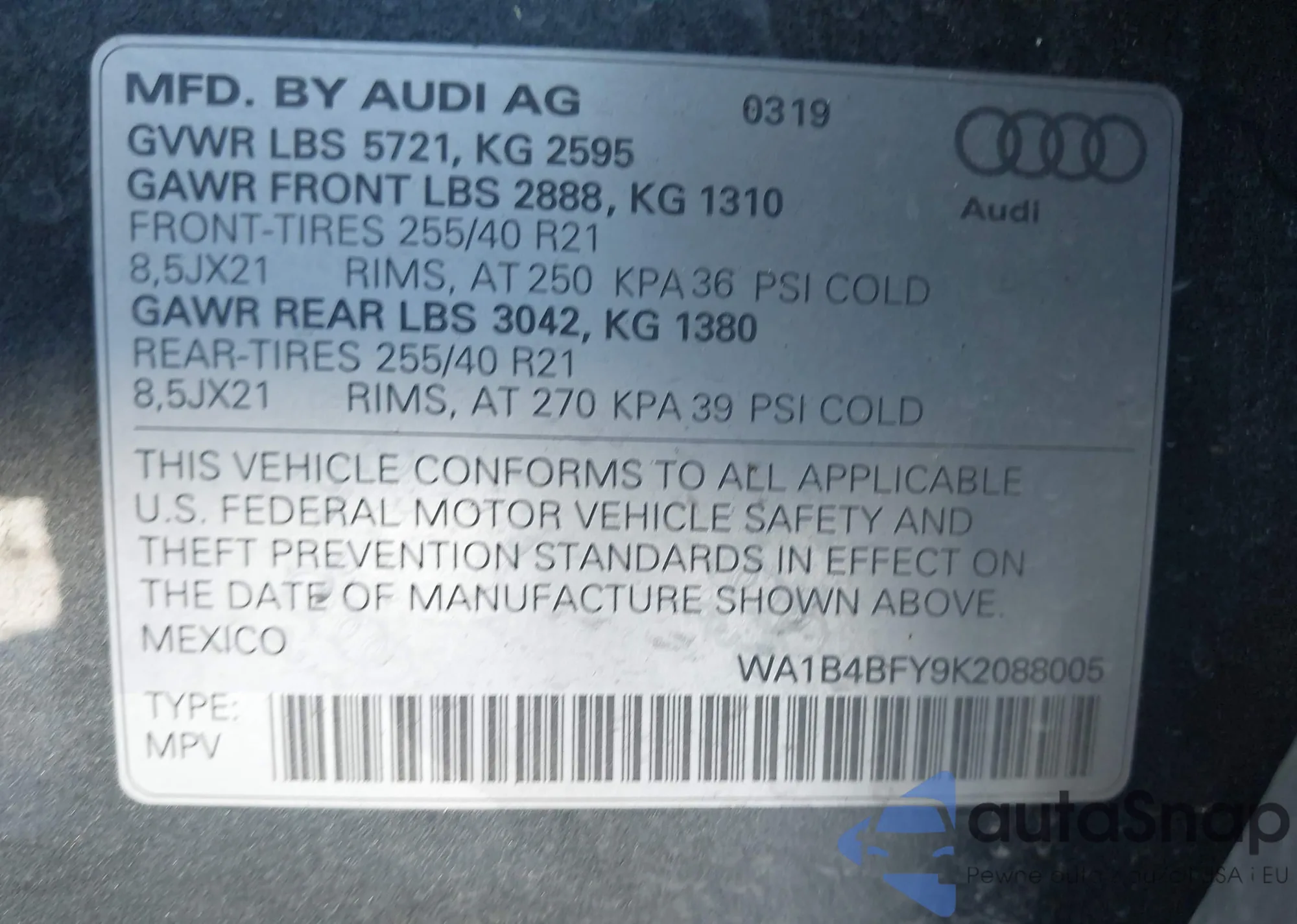 VIN: WA1B4BFY9K2088005