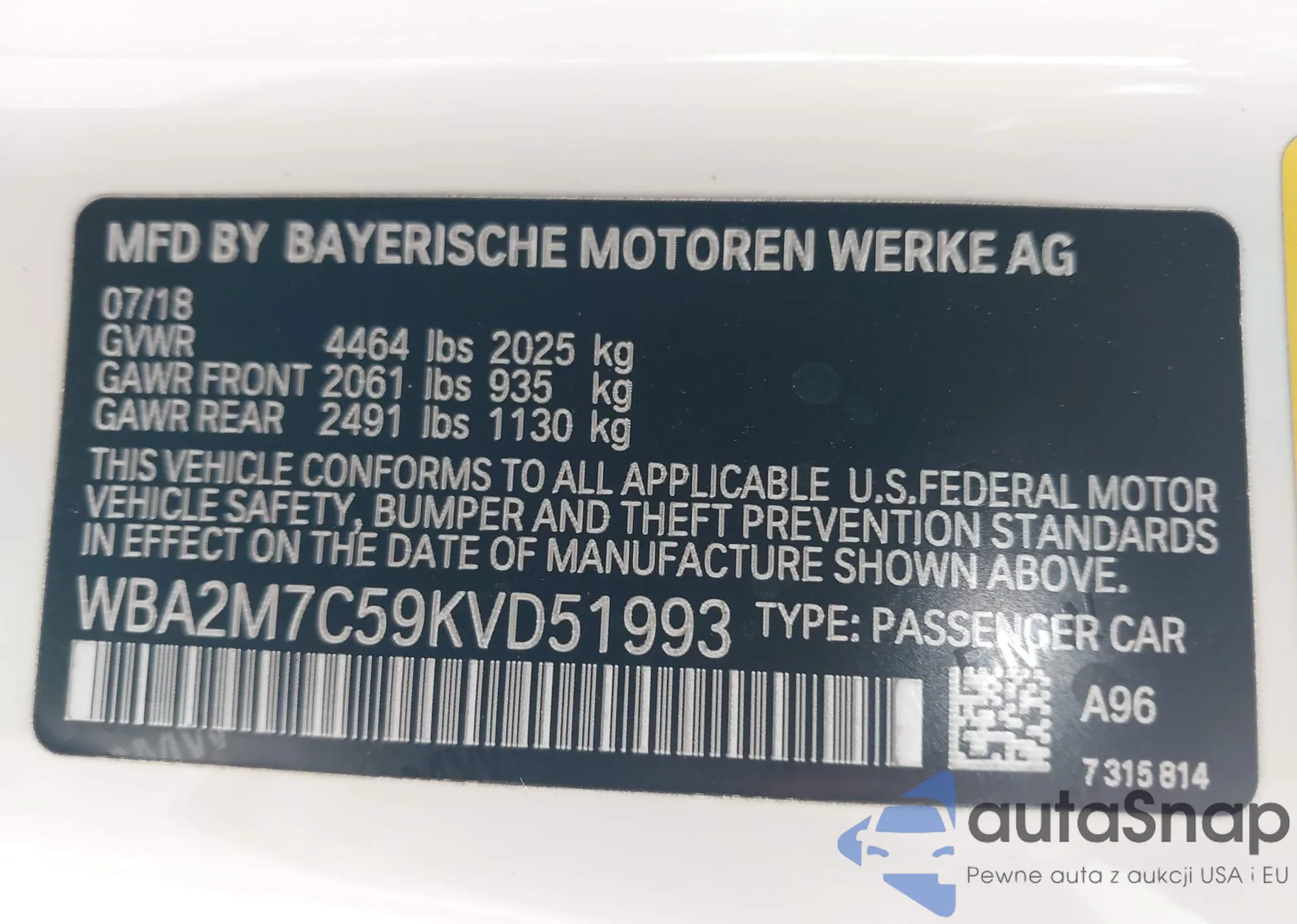 VIN: WBA2M7C59KVD51993