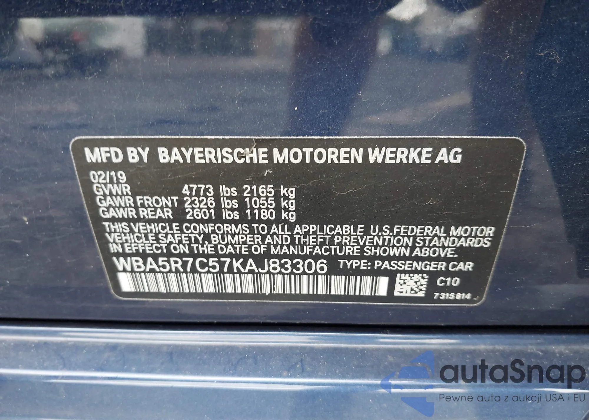 VIN: WBA5R7C57KAJ83306