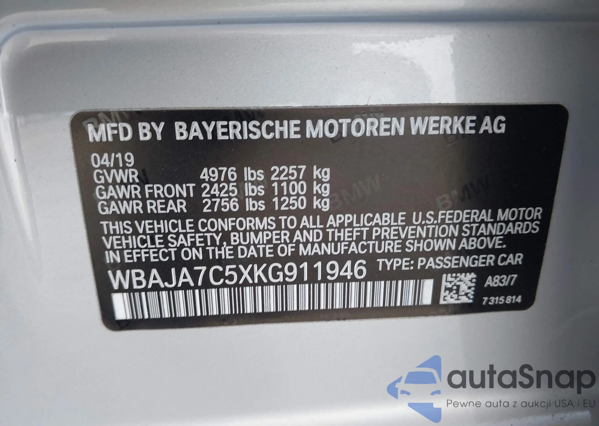 VIN: WBAJA7C5XKG911946