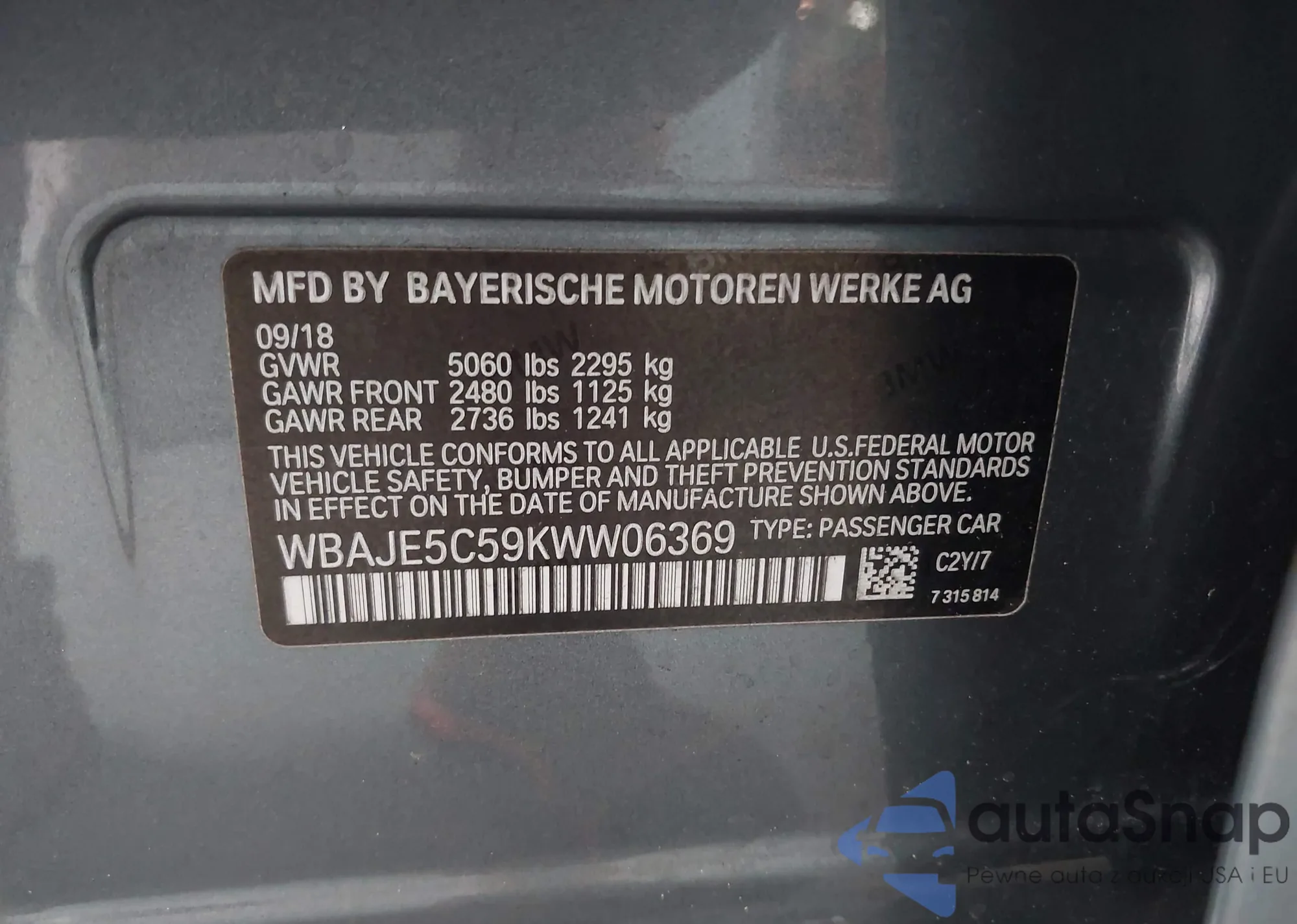 VIN: WBAJE5C59KWW06369