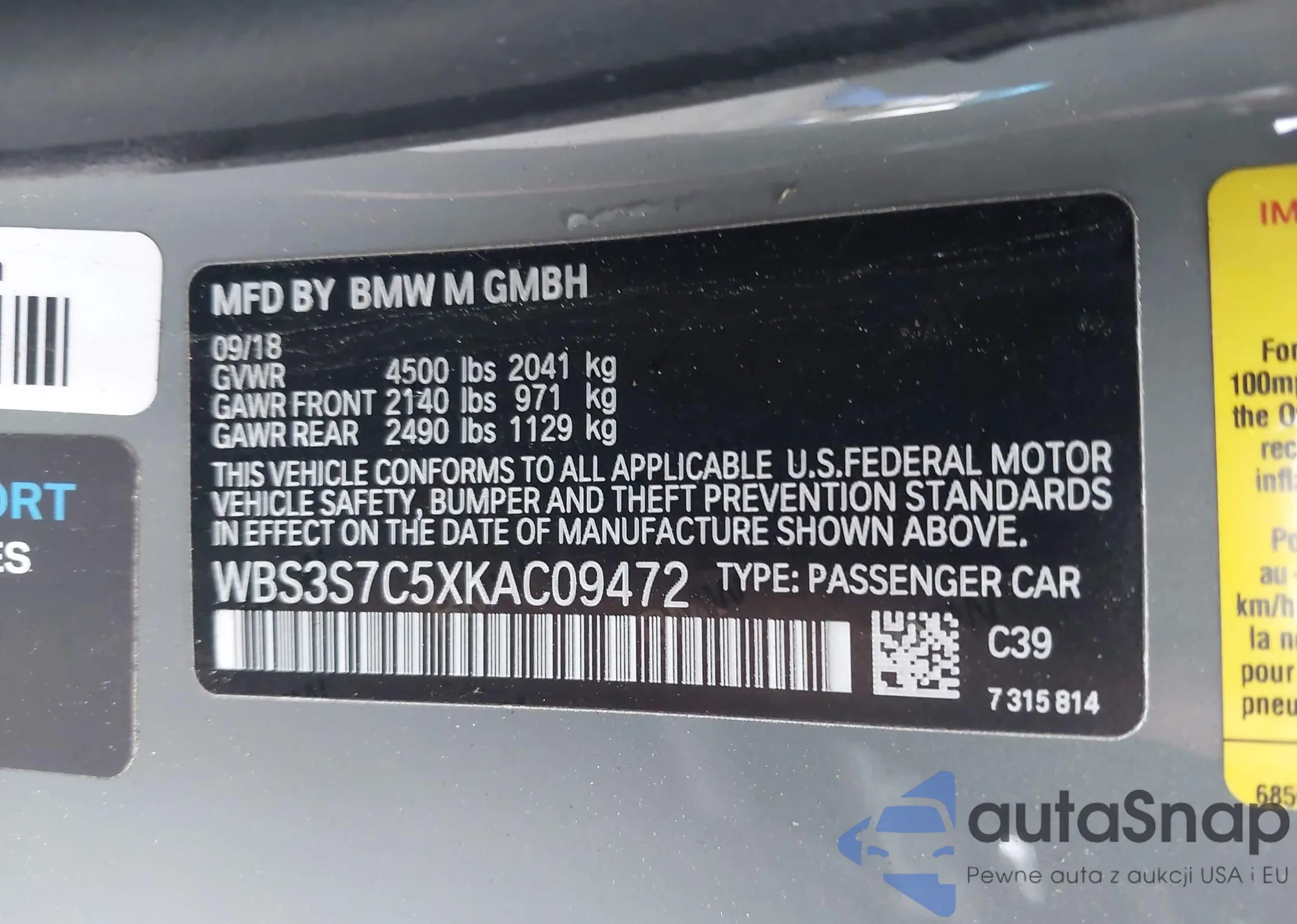 VIN: WBS3S7C5XKAC09472