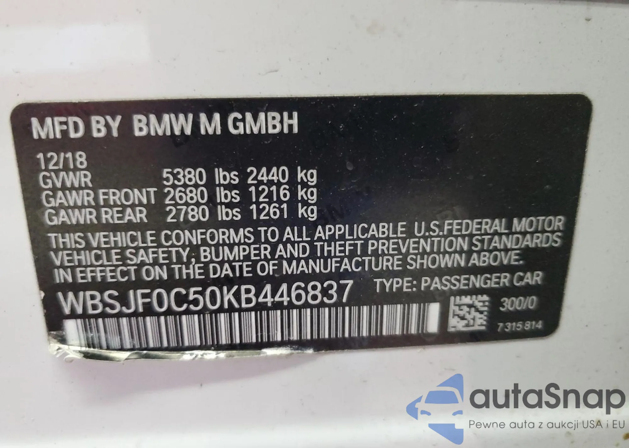 Samochód BMW M5 2019 (VIN WBSJF0C50KB446837) był już licytowany 1 razy i/lub sprzedaje go niezweryfikowany sprzedawca. Zalecamy raport Carfax i potwierdzenie możliwości rejestracji pojazdu przed zakupem.