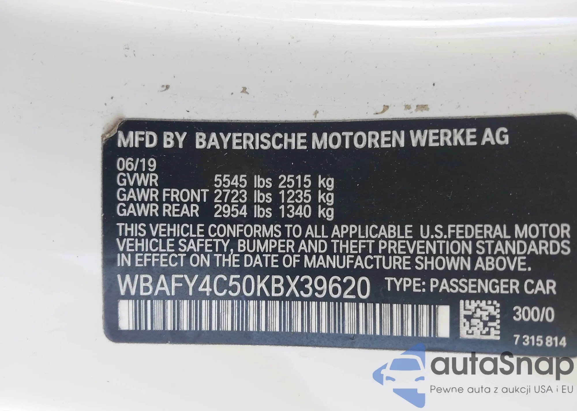 WBAFY4C50KBX39620 IAAI