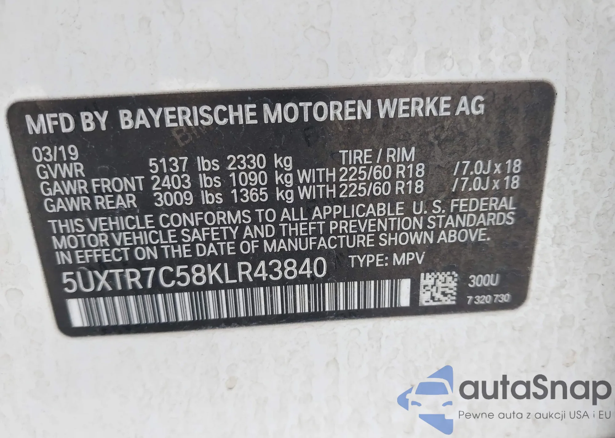 VIN: 5UXTR7C58KLR43840