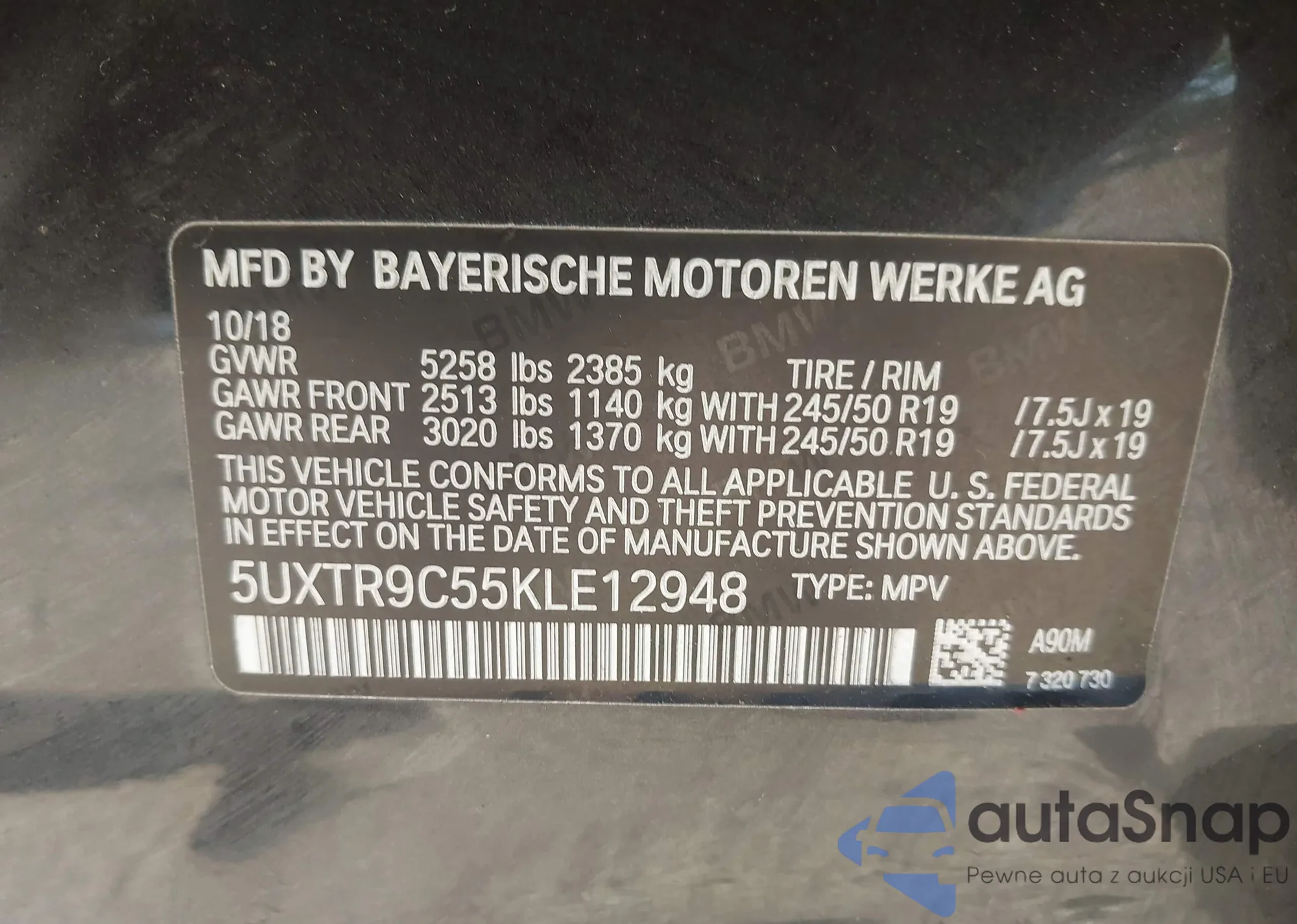 VIN: 5UXTR9C55KLE12948