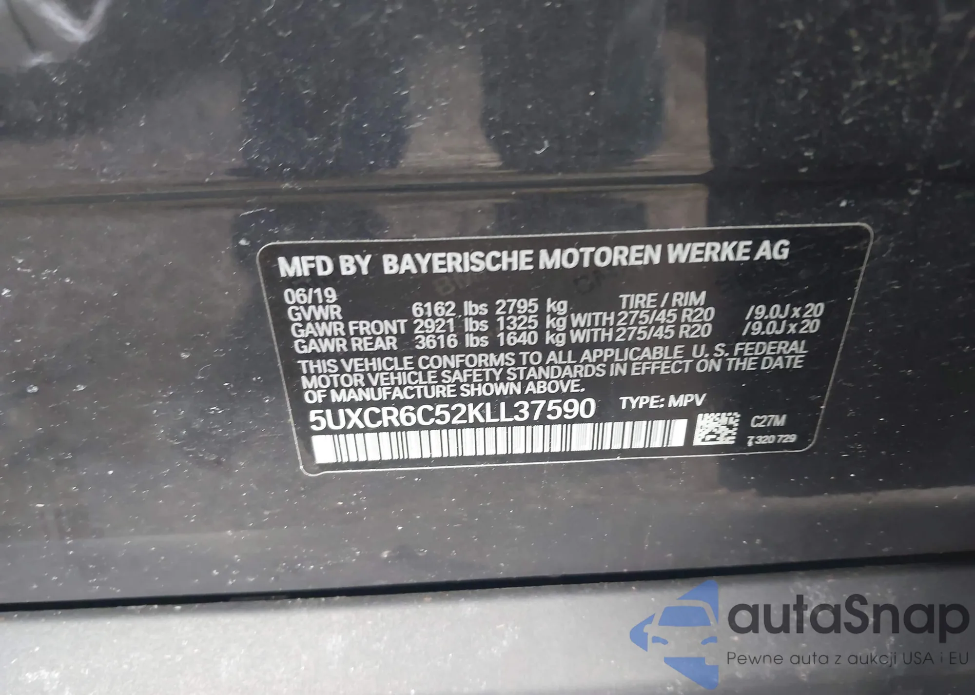 • VIN: 5UXCR6C52KLL37590