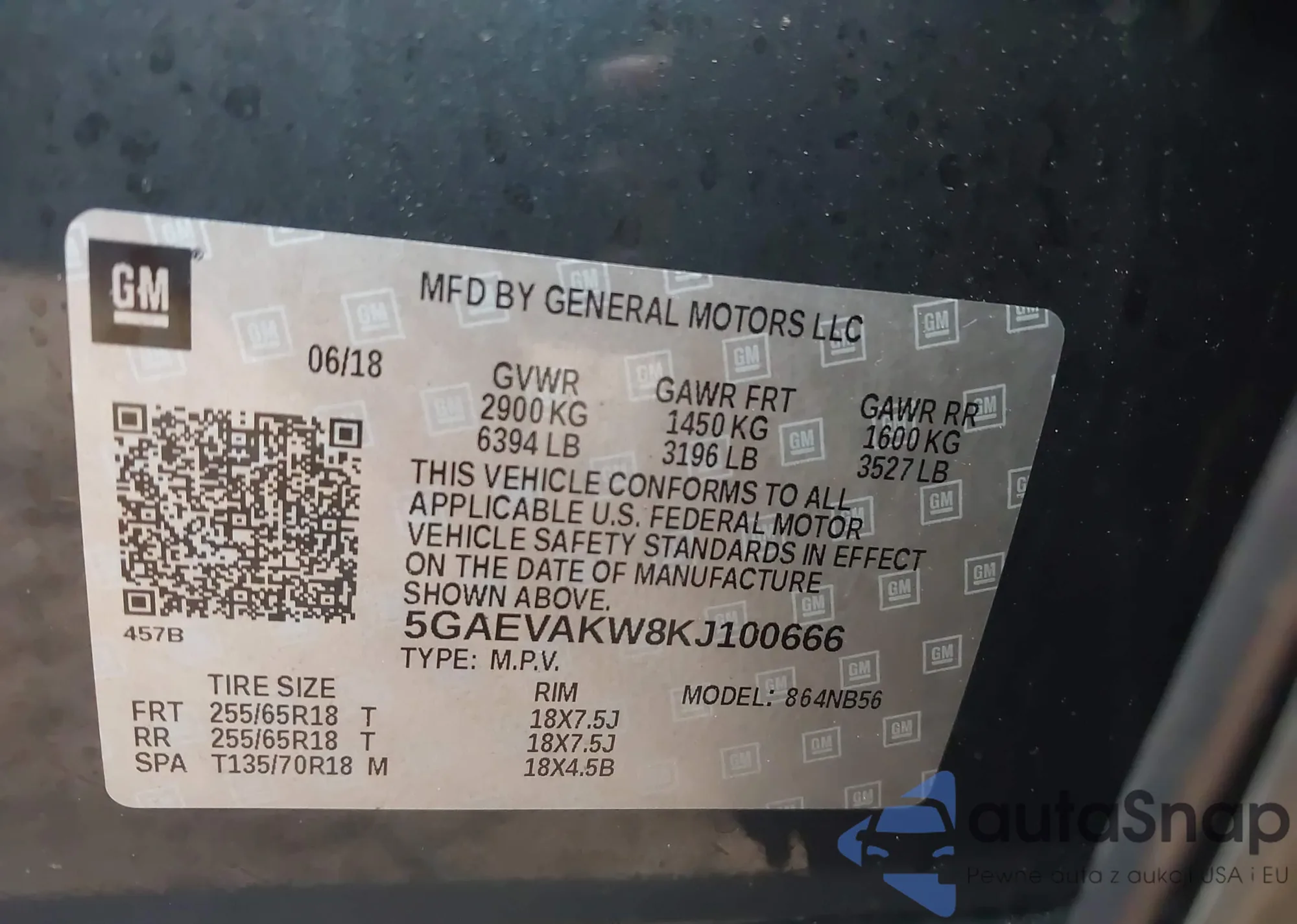 VIN: 5GAEVAKW8KJ100666
