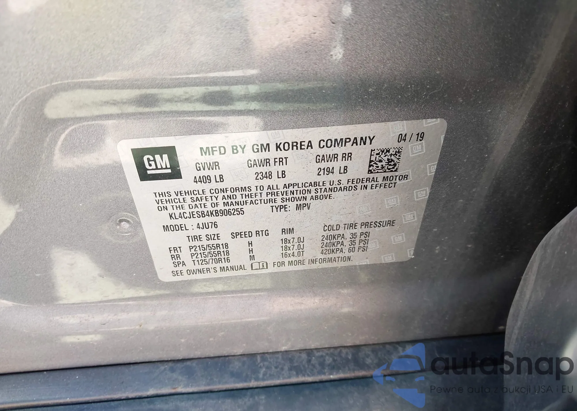 VIN: KL4CJESB4KB906255