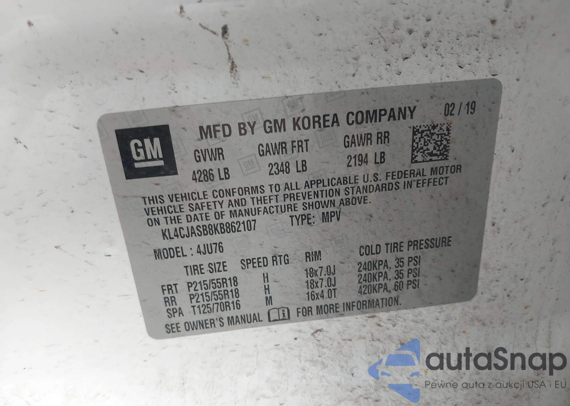 Samochód Buick Encore 2019 (VIN KL4CJASB8KB862107) nie był wcześniej licytowany. Dokumenty są czyste, przebieg odpowiada lub jest niższy niż średnia rynku. Sprzedaje go firma ubezpieczeniowa – polecamy zakup. Dostawa do portu zajmie ok. 6–8 tygodni.