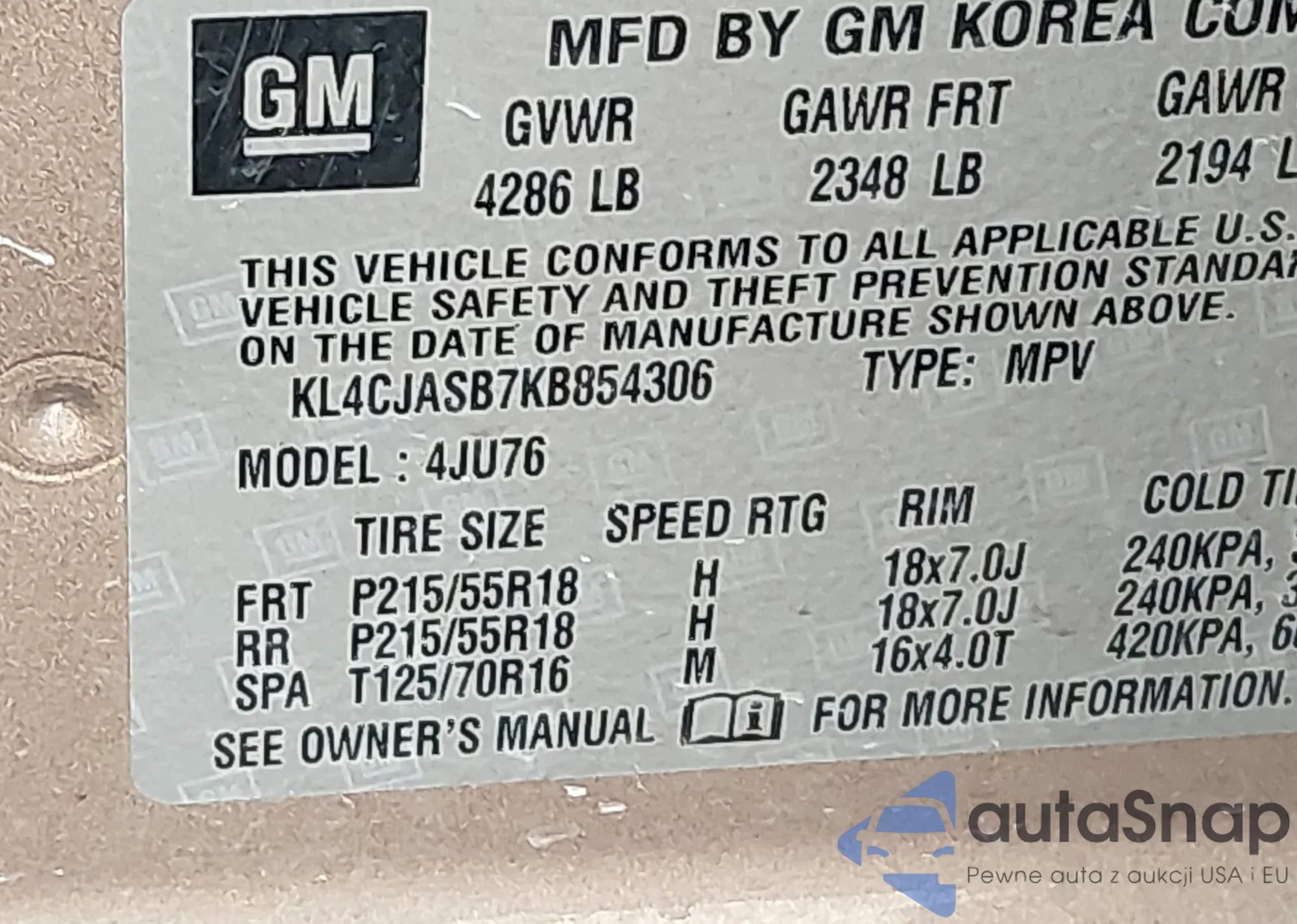 Samochód Buick Encore 2019 (VIN KL4CJASB7KB854306) nie był wcześniej licytowany. Dokumenty są czyste, przebieg odpowiada lub jest niższy niż średnia rynku. Sprzedaje go firma ubezpieczeniowa – polecamy zakup. Dostawa do portu zajmie ok. 6–8 tygodni.