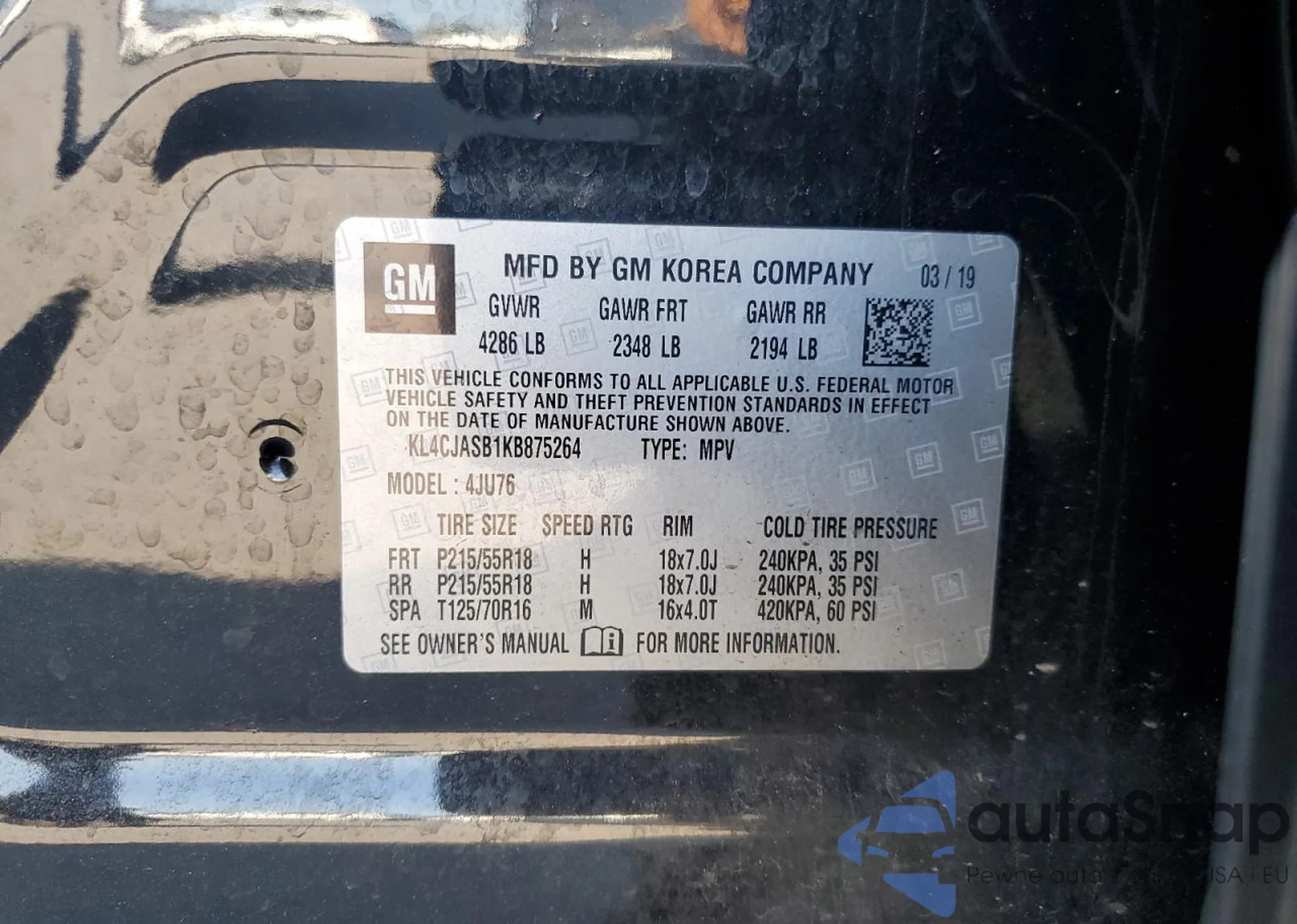 VIN: KL4CJASB1KB875264