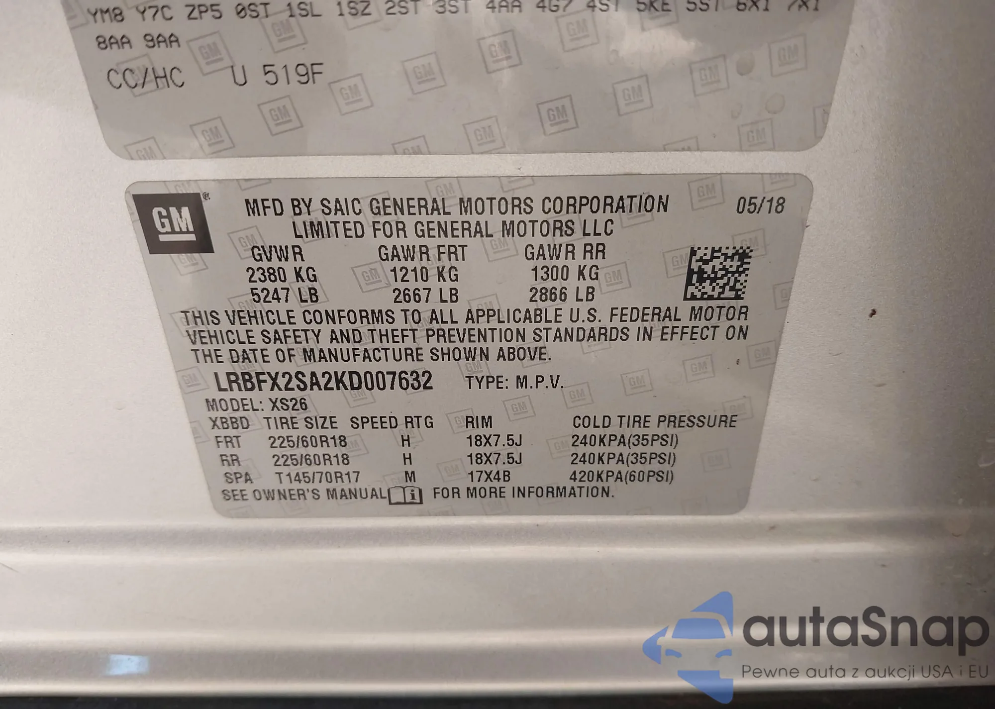 • VIN: LRBFX2SA2KD007632