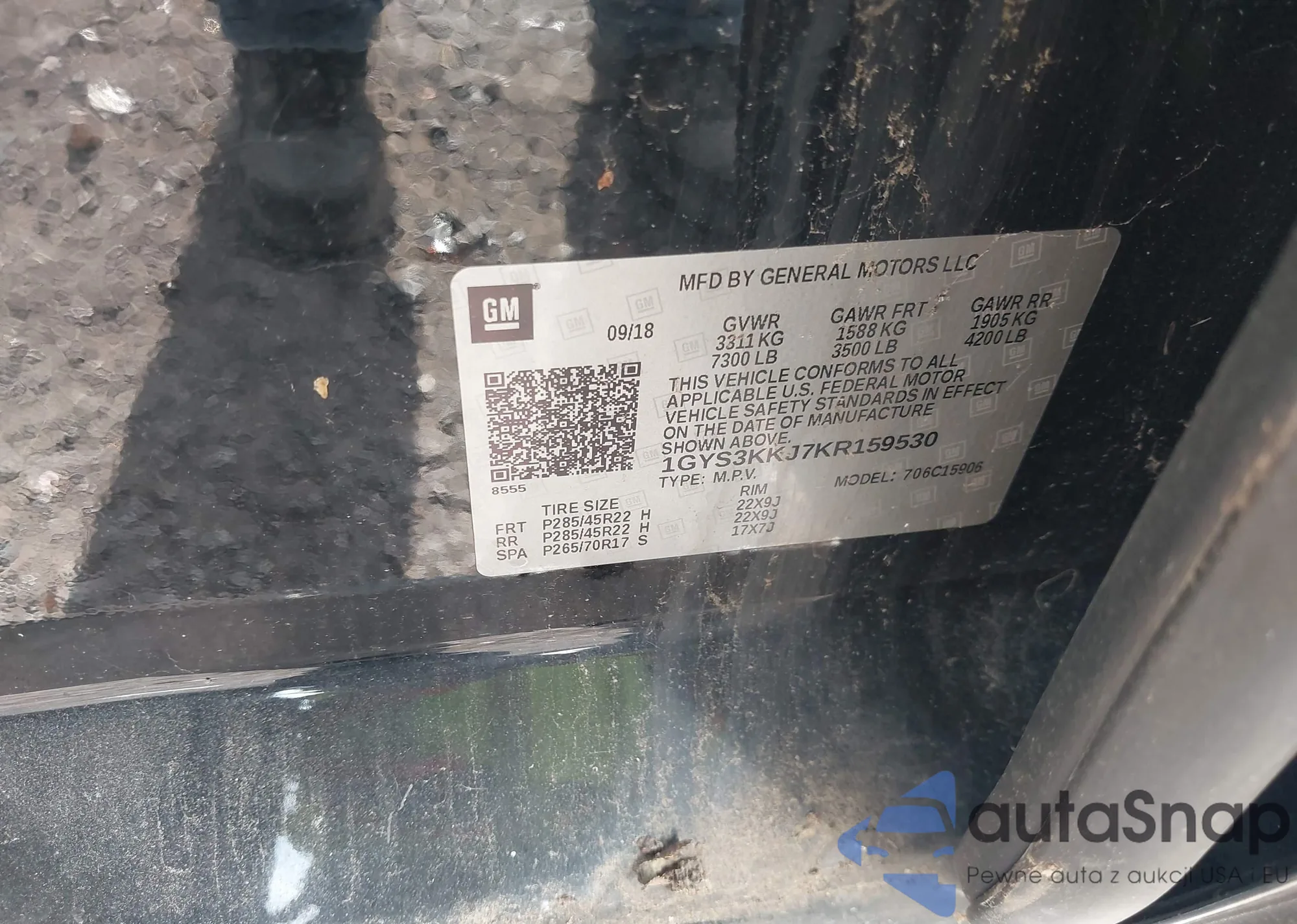 VIN: 1GYS3KKJ7KR159530