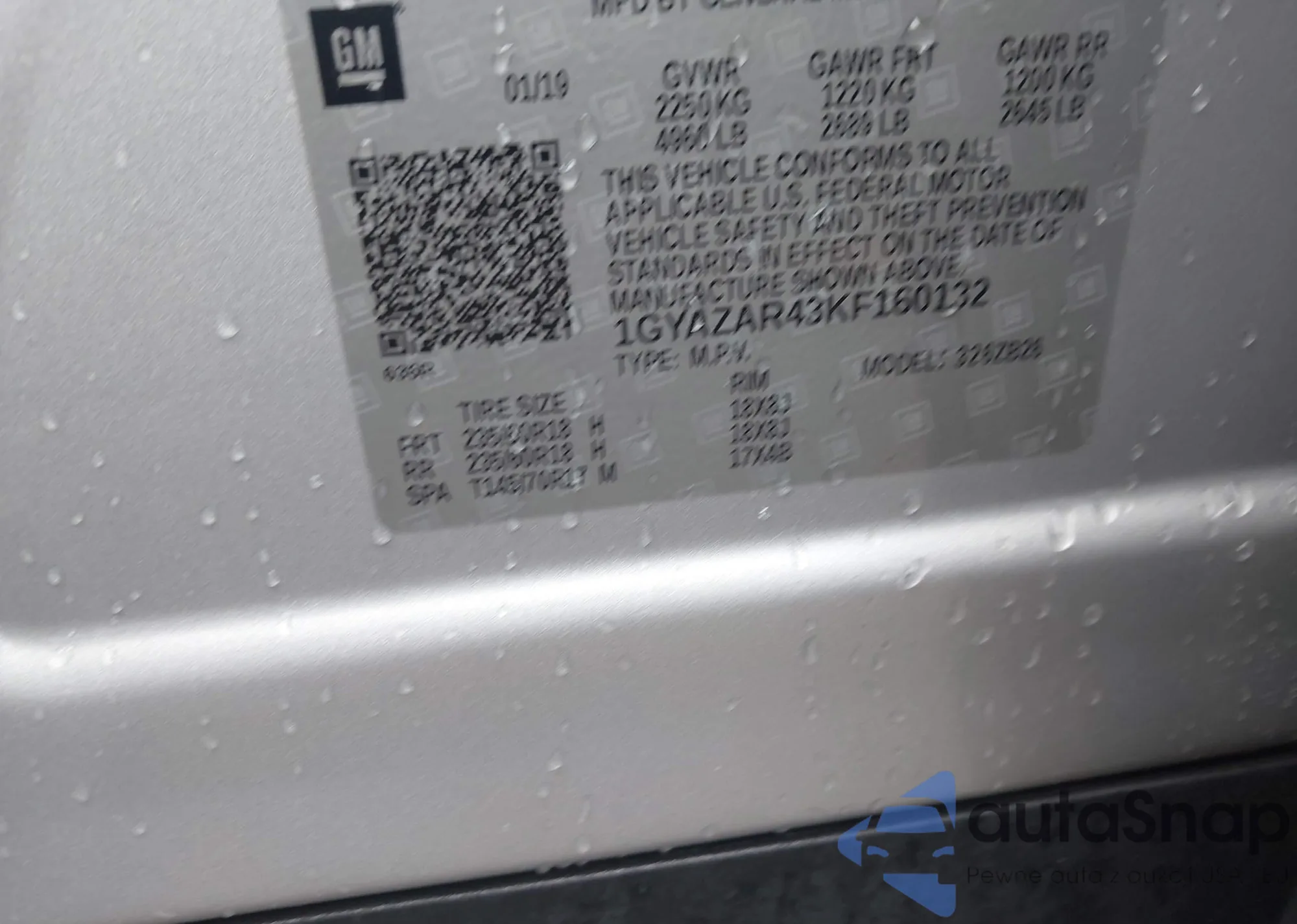 VIN: 1GYAZAR43KF160132