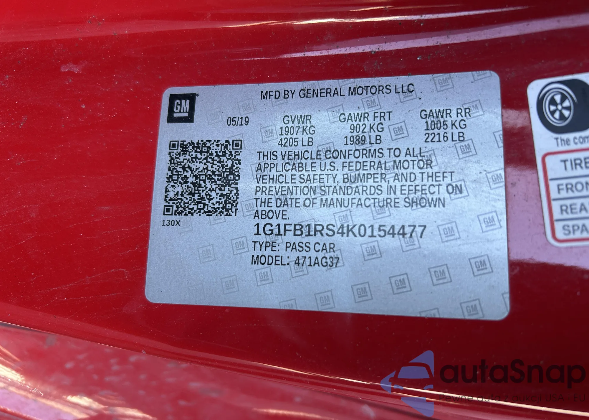 VIN: 1G1FB1RS4K0154477
