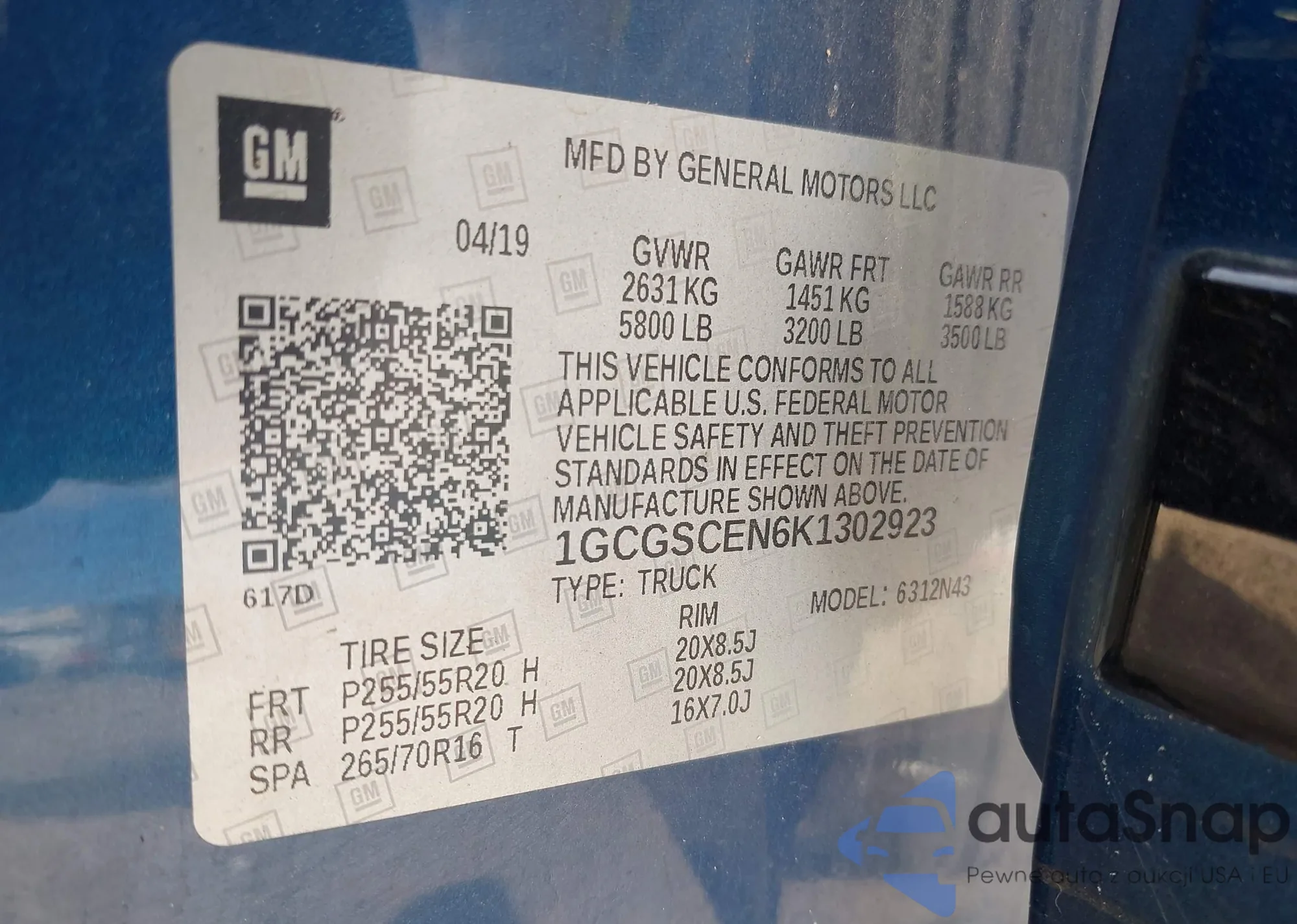 VIN: 1GCGSCEN6K1302923