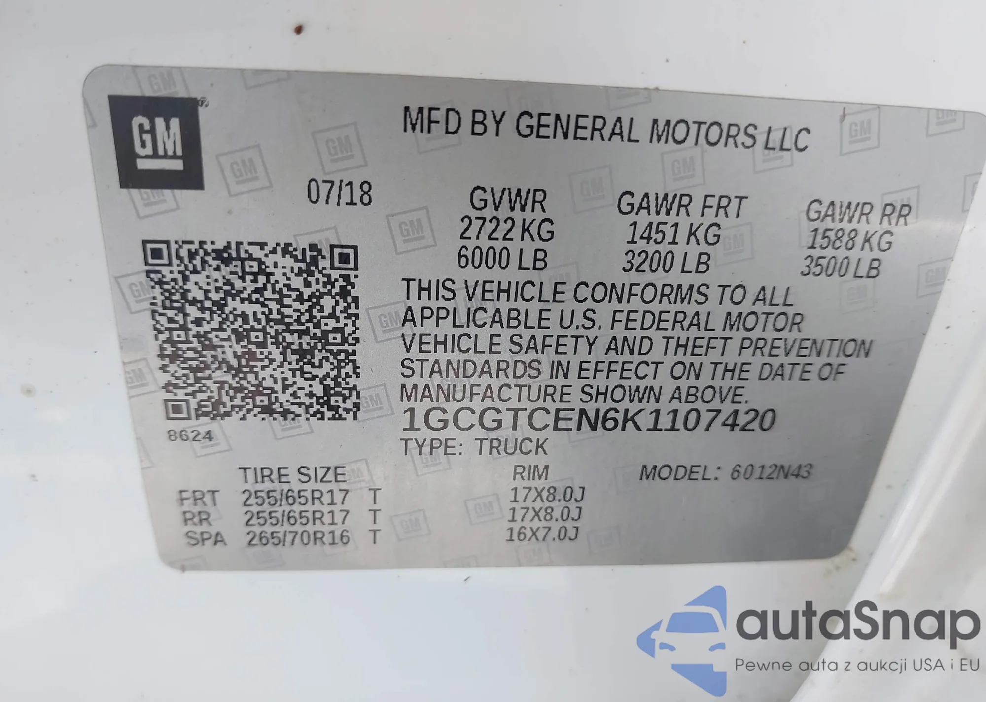 VIN: 1GCGTCEN6K1107420