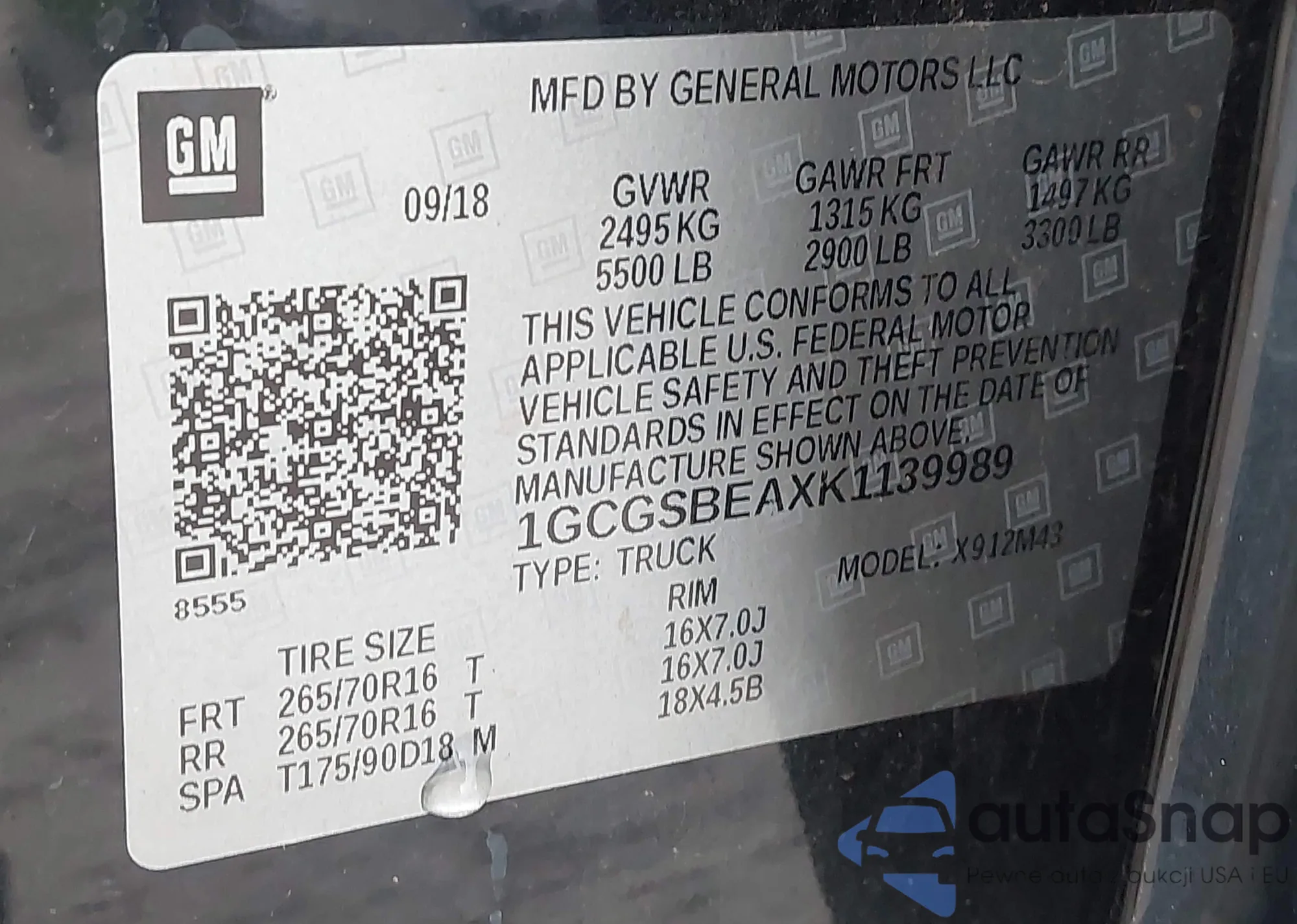 VIN: 1GCGSBEAXK1139989
