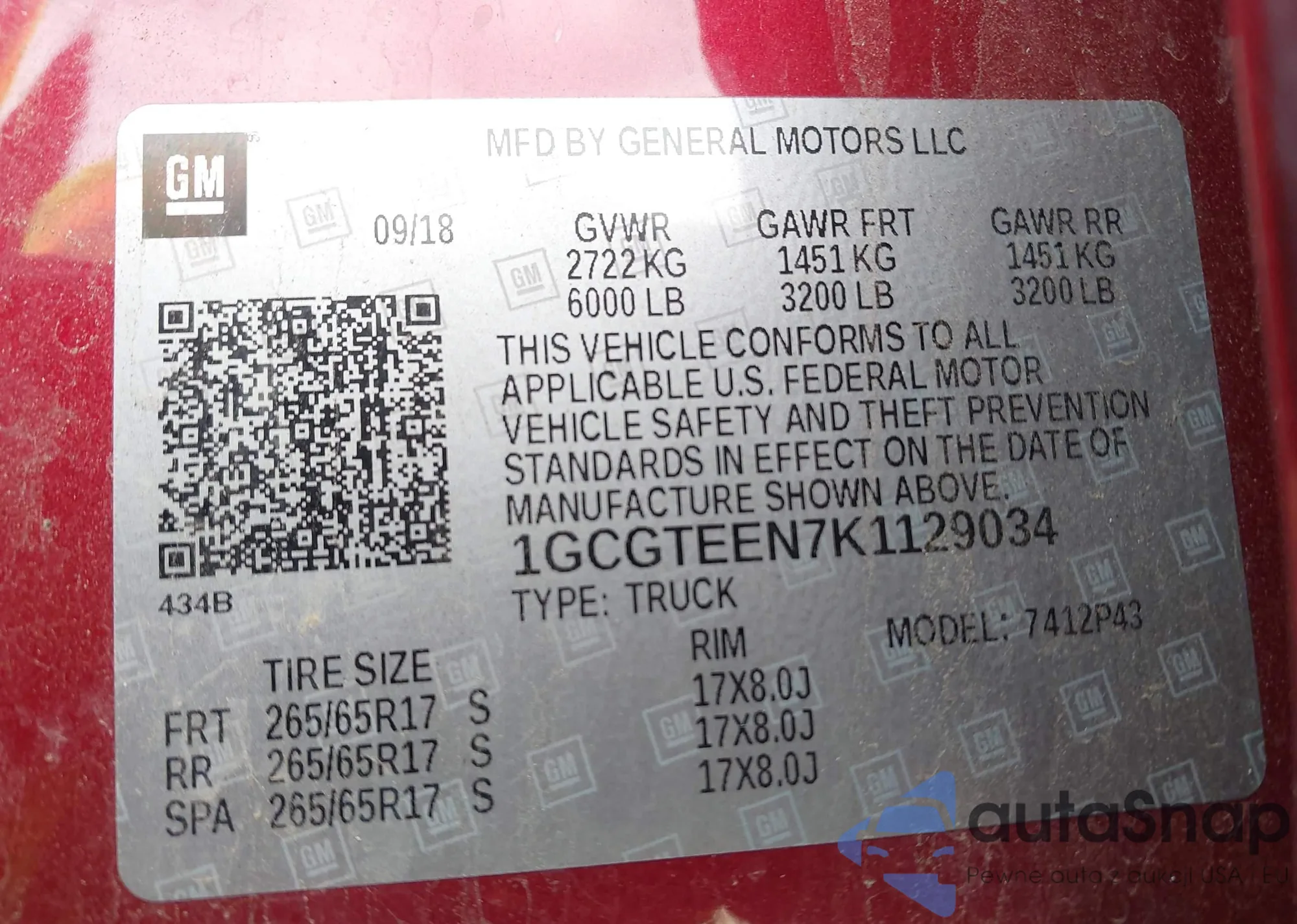 • VIN: 1GCGTEEN7K1129034