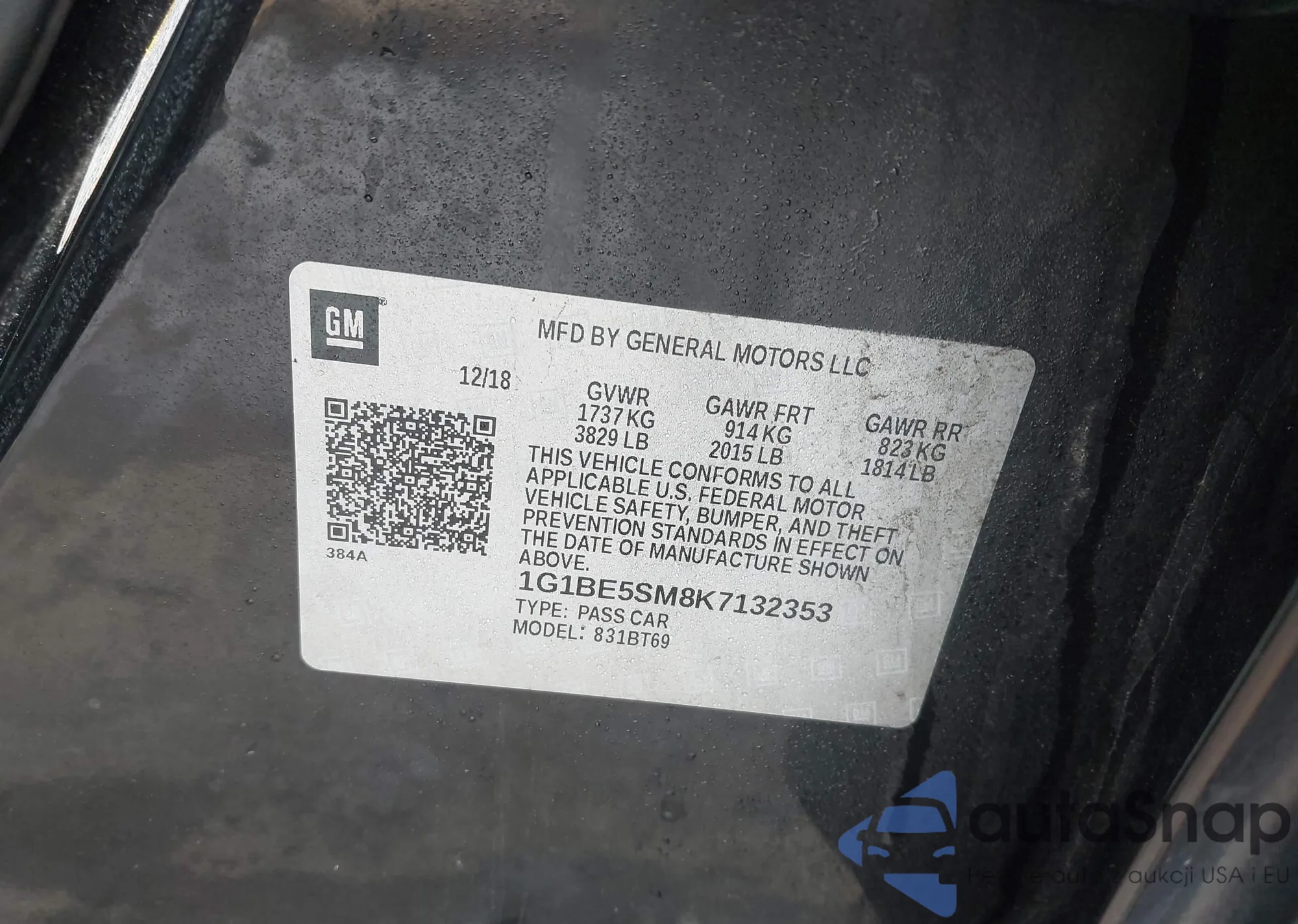 Samochód Chevrolet Cruze 2019 (VIN 1G1BE5SM8K7132353) nie był wcześniej licytowany. Dokumenty są czyste, przebieg odpowiada lub jest niższy niż średnia rynku. Sprzedaje go firma ubezpieczeniowa – polecamy zakup. Dostawa do portu zajmie ok. 6–8 tygodni.