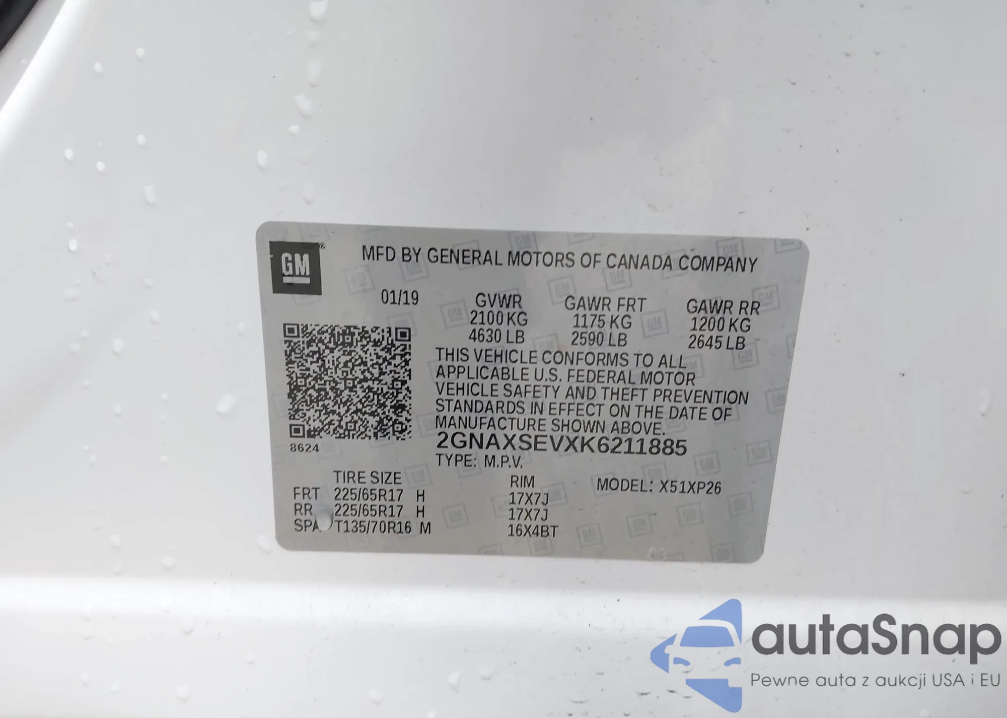 VIN: 2GNAXSEVXK6211885