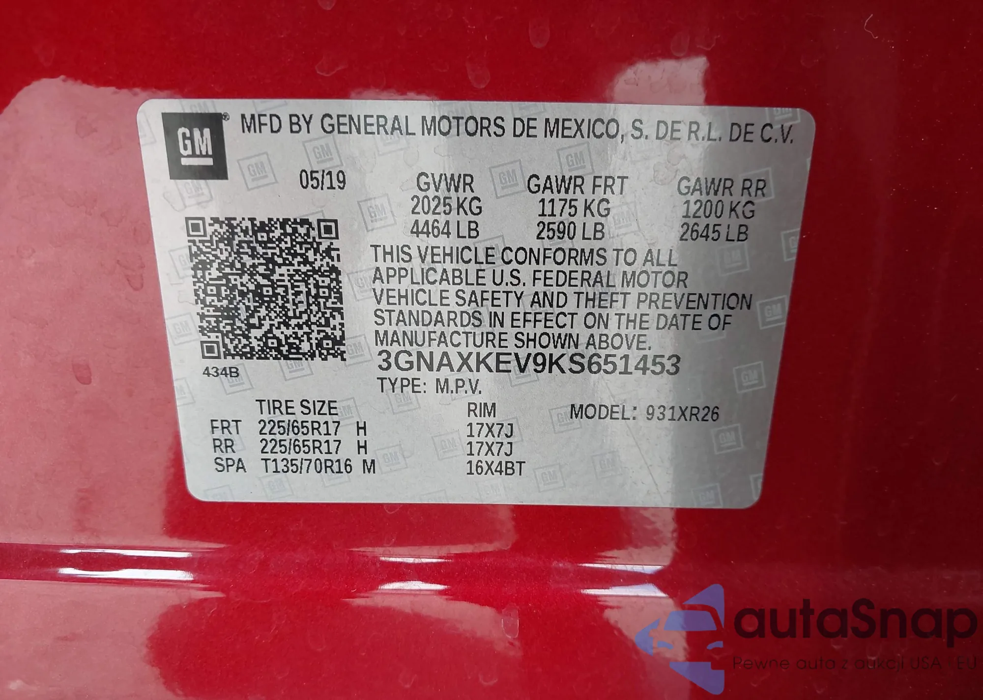 VIN: 3GNAXKEV9KS651453