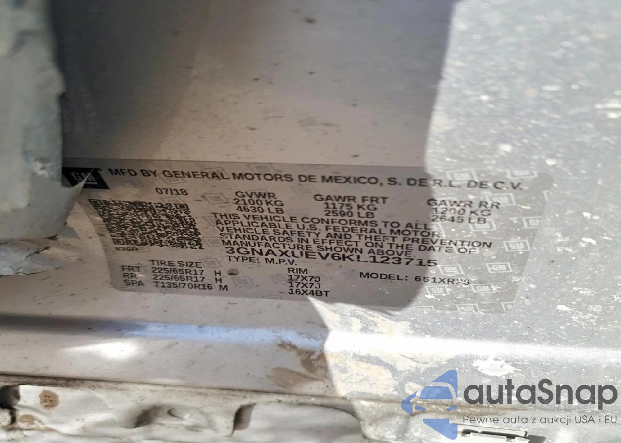 VIN: 3GNAXUEV6KL123715
