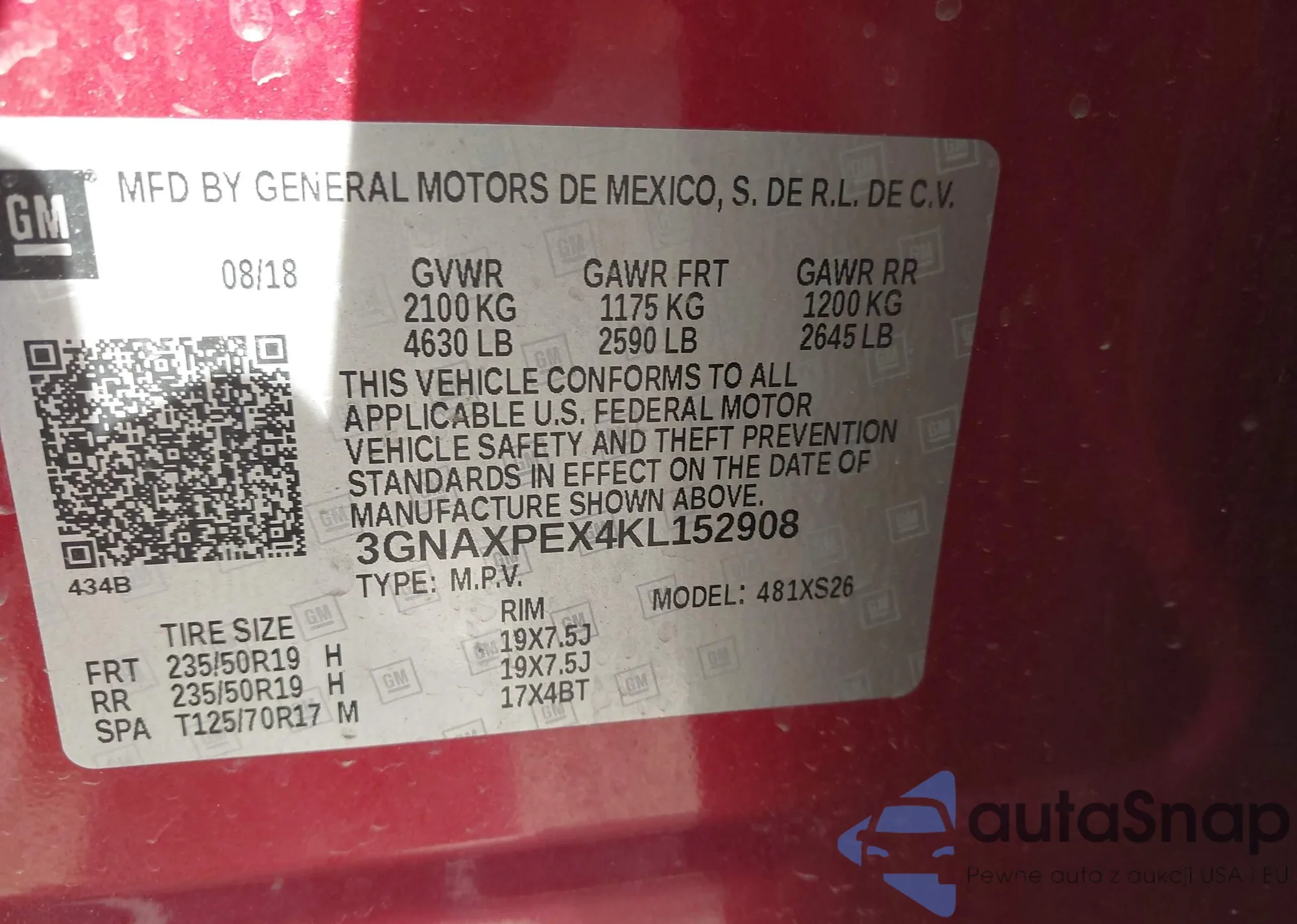 • VIN: 3GNAXPEX4KL152908
