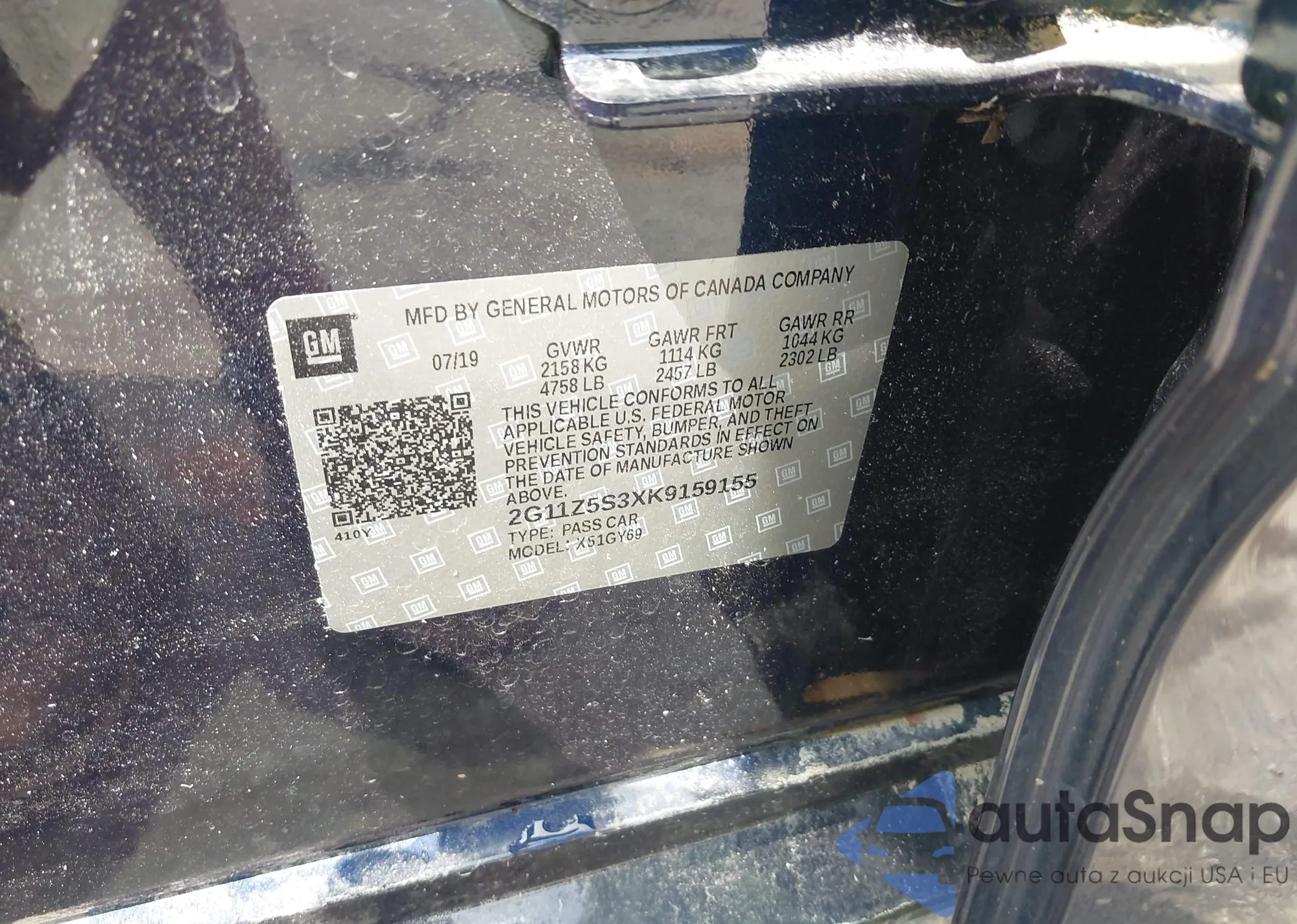 VIN: 2G11Z5S3XK9159155