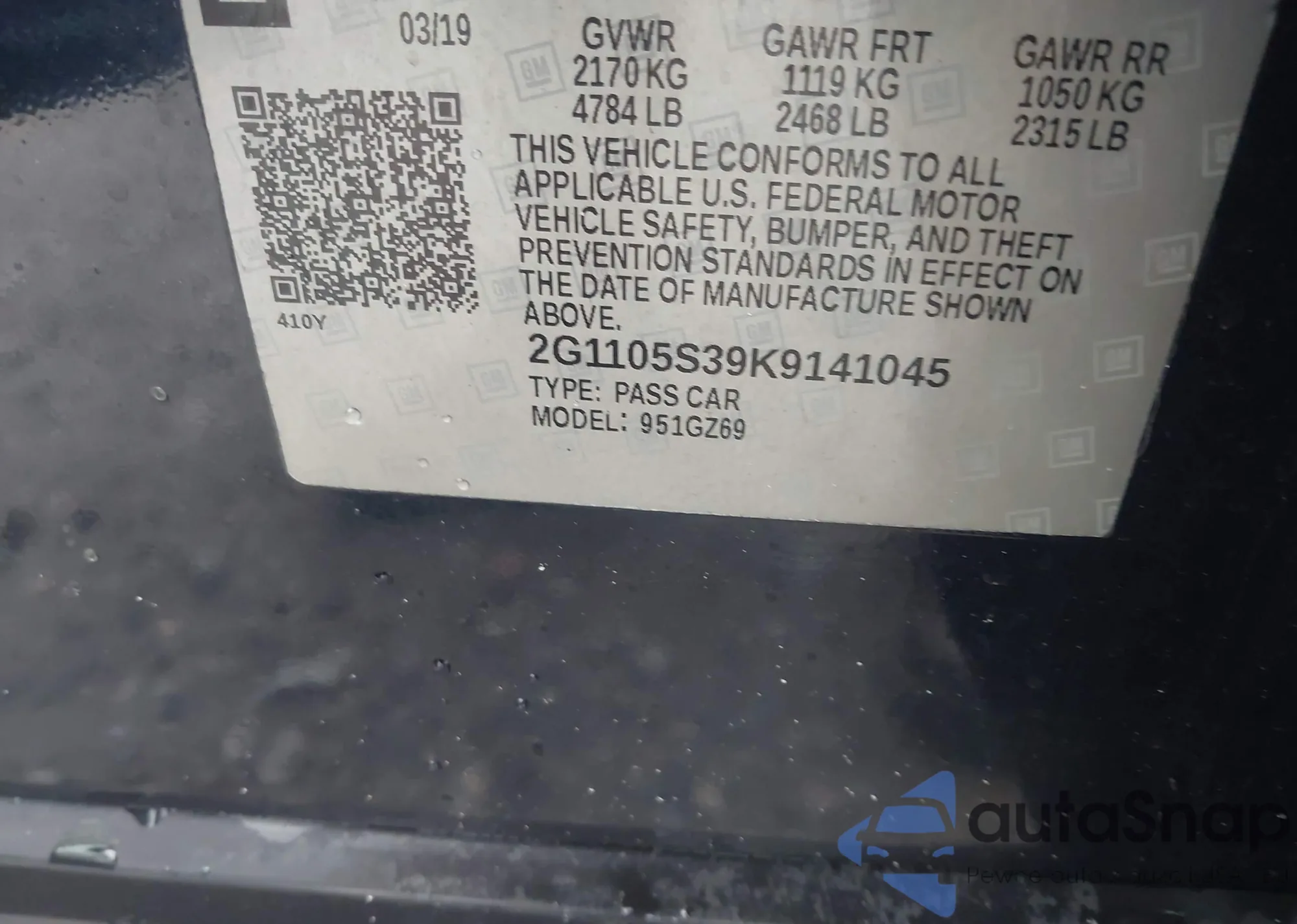 VIN: 2G1105S39K9141045