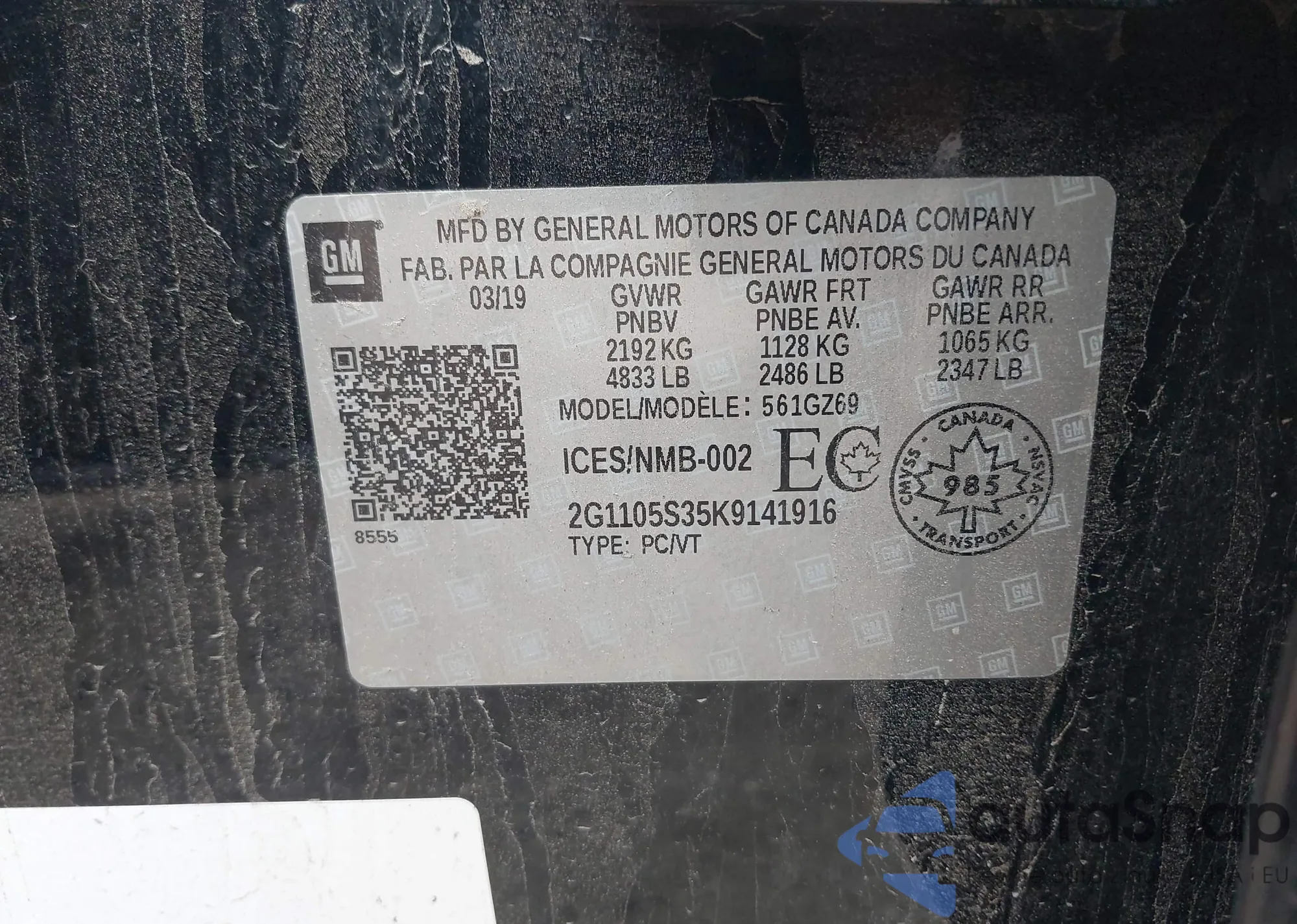 • VIN: 2G1105S35K9141916