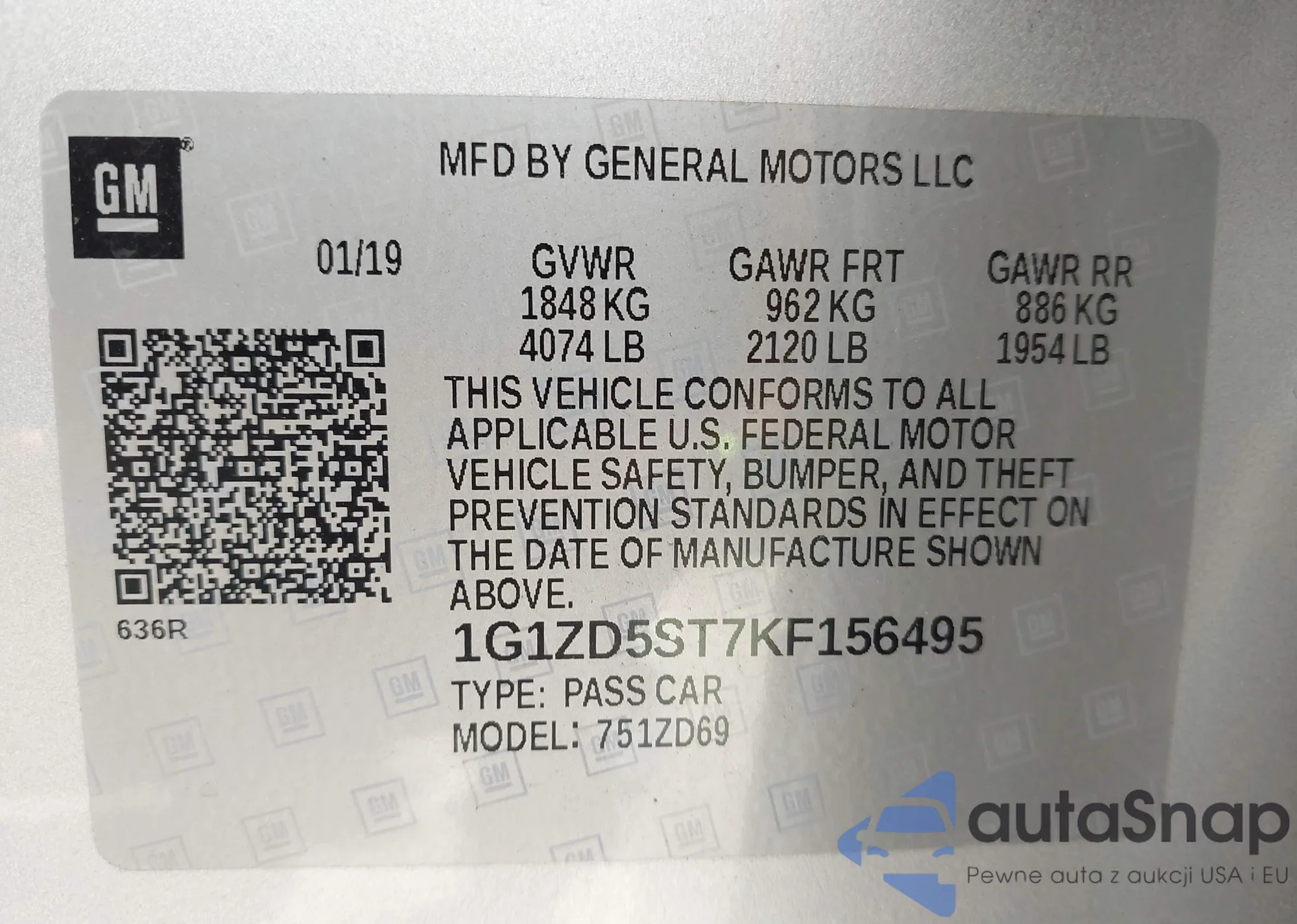 VIN: 1G1ZD5ST7KF156495