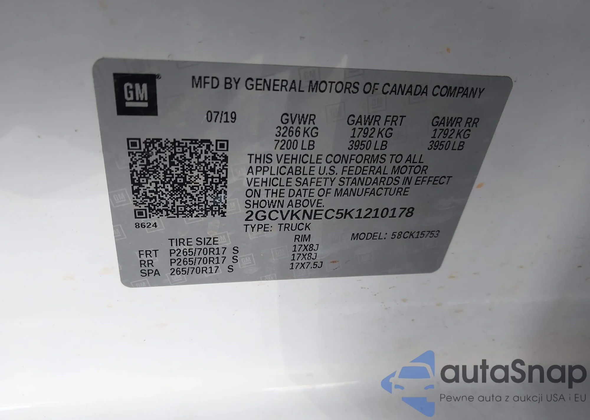 • VIN: 2GCVKNEC5K1210178