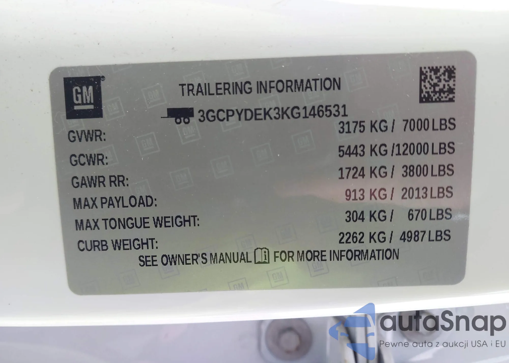 • VIN: 3GCPYDEK3KG146531