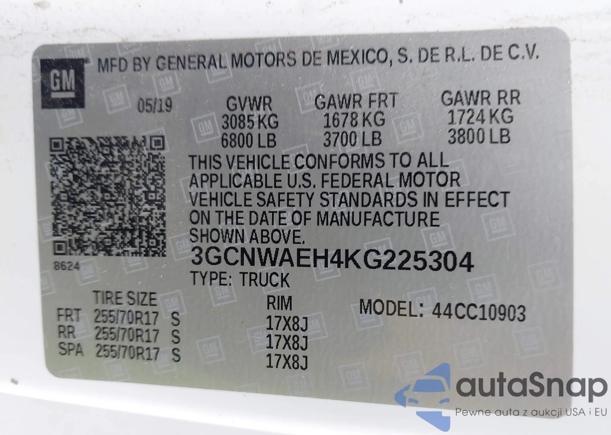 VIN: 3GCNWAEH4KG225304